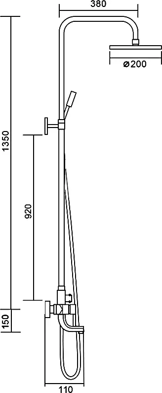 Вылет верхнего душа, см