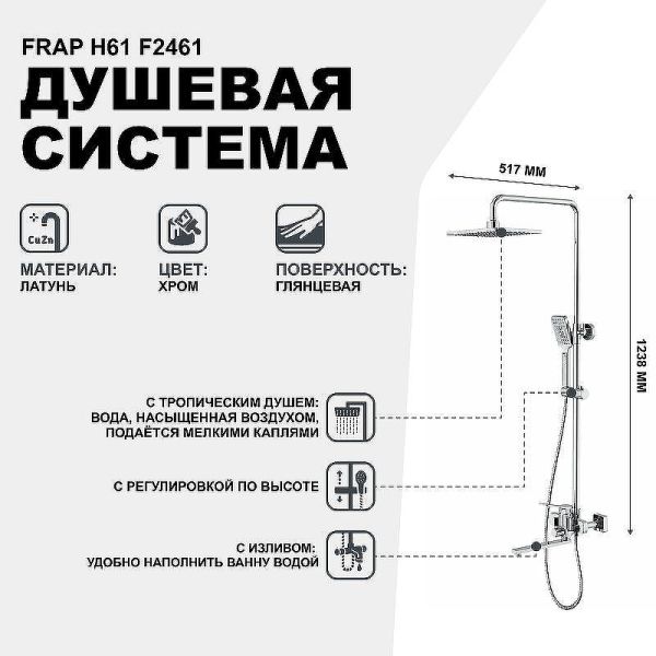 Душевая система Frap H61 F2461. Характеристики: