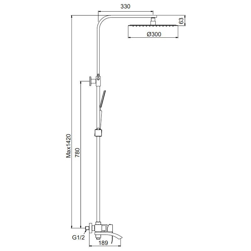 Размер верхнего душа, см:30
