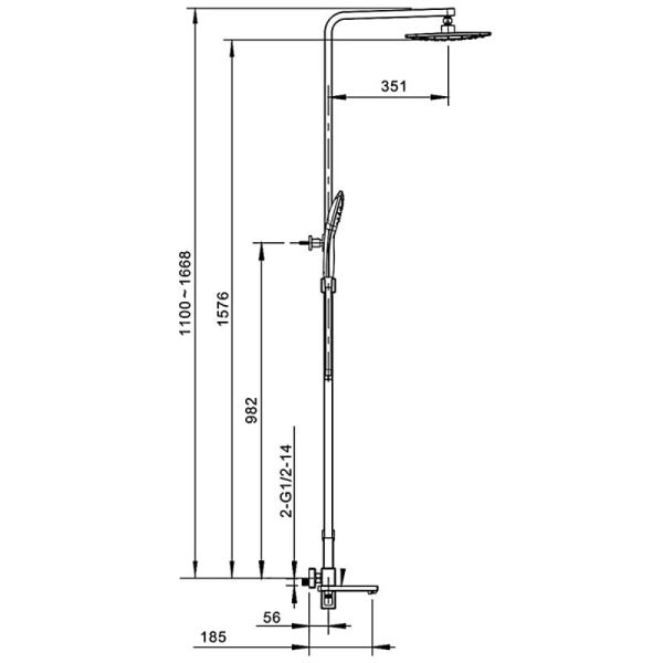 - высота душевой стойки: 945-1500 мм