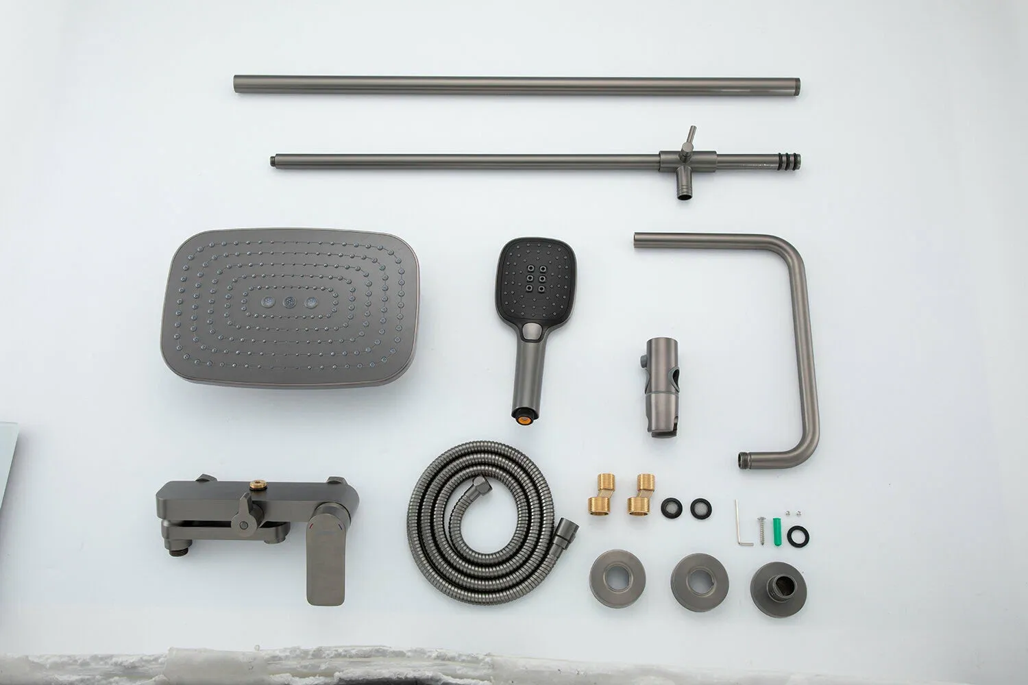 Современная душевая система серии G2448-9 GAPPO (гаппо) выполнена из латуни в цвете оружейная сталь, имеет глянцевую поверхность