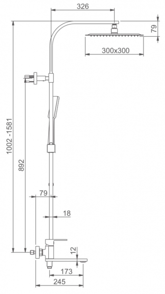 Размер верхнего душа, см:30