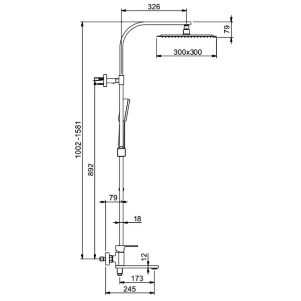 - высота душевой стойки: 1002-1581 мм