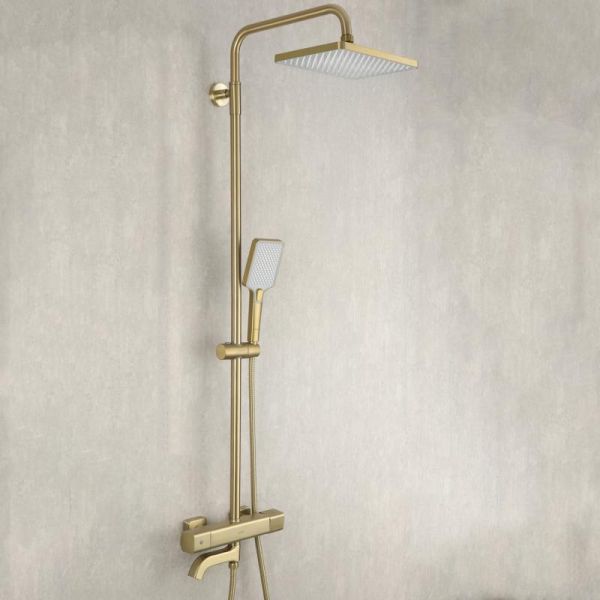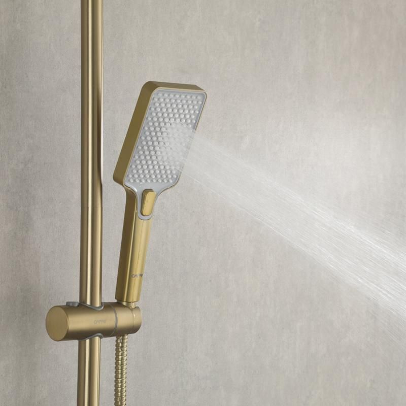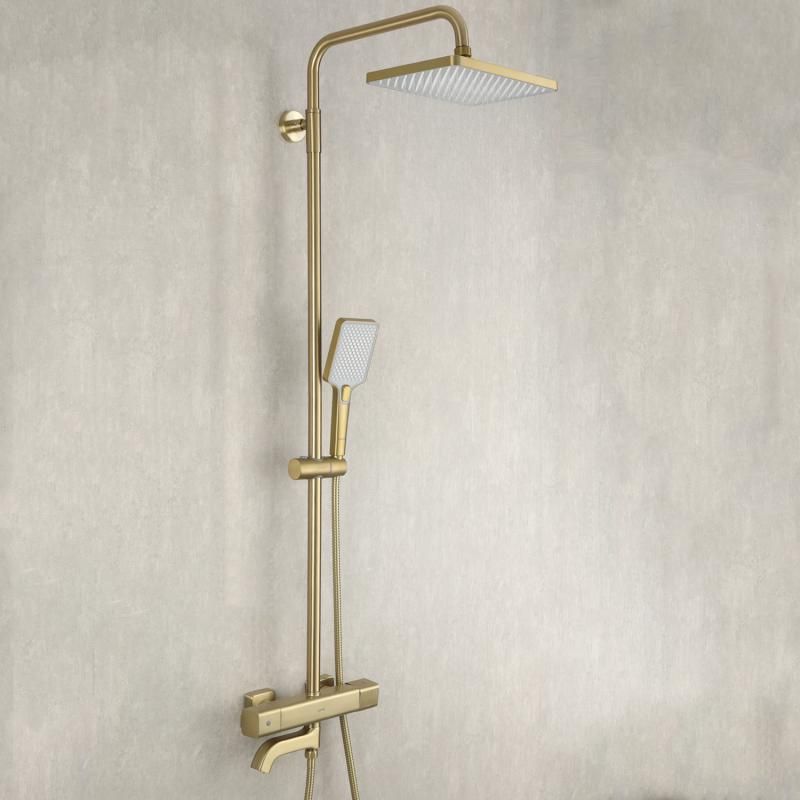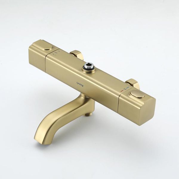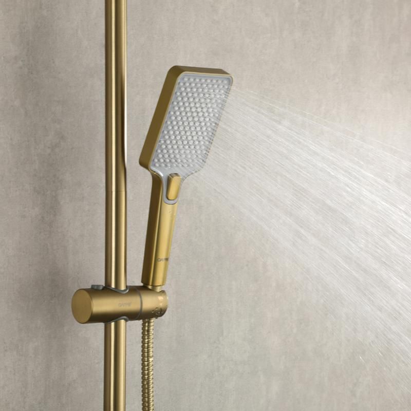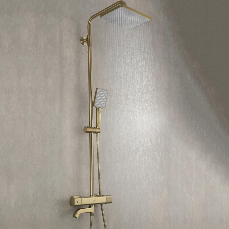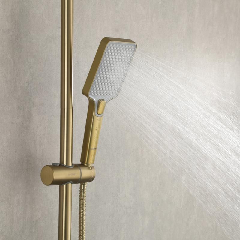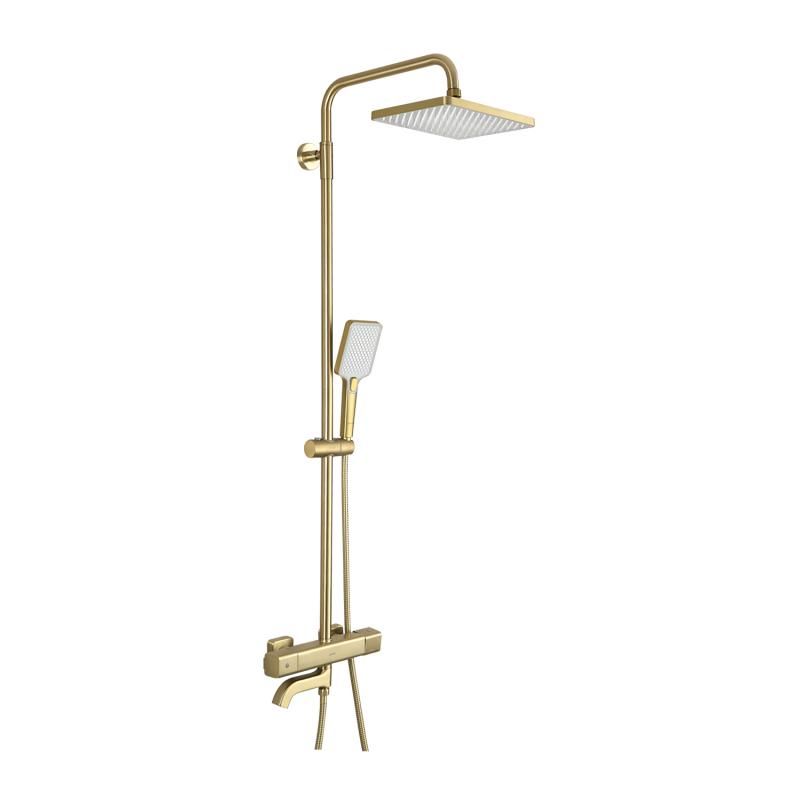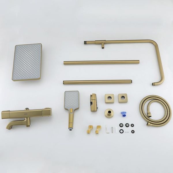 Душевая система с термостатом золотой цвет Gappo G2491-3, из латуни, тропический душ 25*25 см из ABS-пластика, 1 режимная ручная лейка, поворотный излив для ванны.
