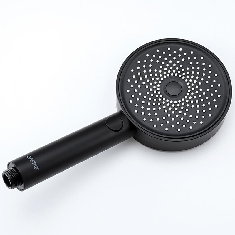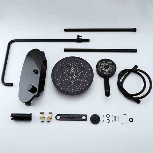 Черная душевая система со смесителем полкой Gappo G2495-86, смеситель из латуни с каскадным аэратором (водопад). Тропический душ системы и ручной душ изготовлены из ABS-пластика со системой легкой очистки от известкового камня.