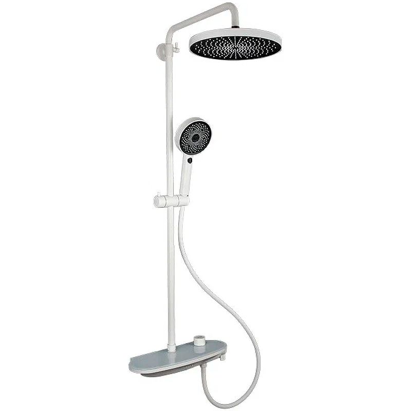 Душевая система со смесителем полкой Gappo G2495-88 в белом матовом цвете, регулировка воды поворотом ручки, включение/выключение нажатием кнопки, каскадный аэратор (водопад). Смеситель изготовлен из латуни, ручной душ с 3-мя режимами работы.