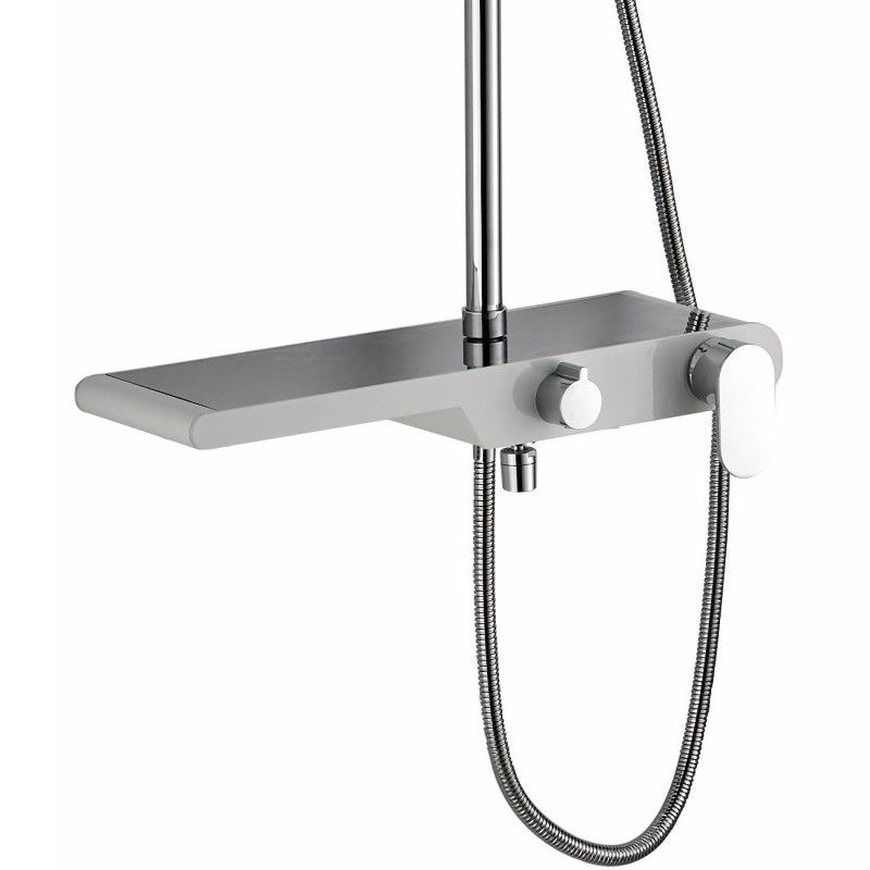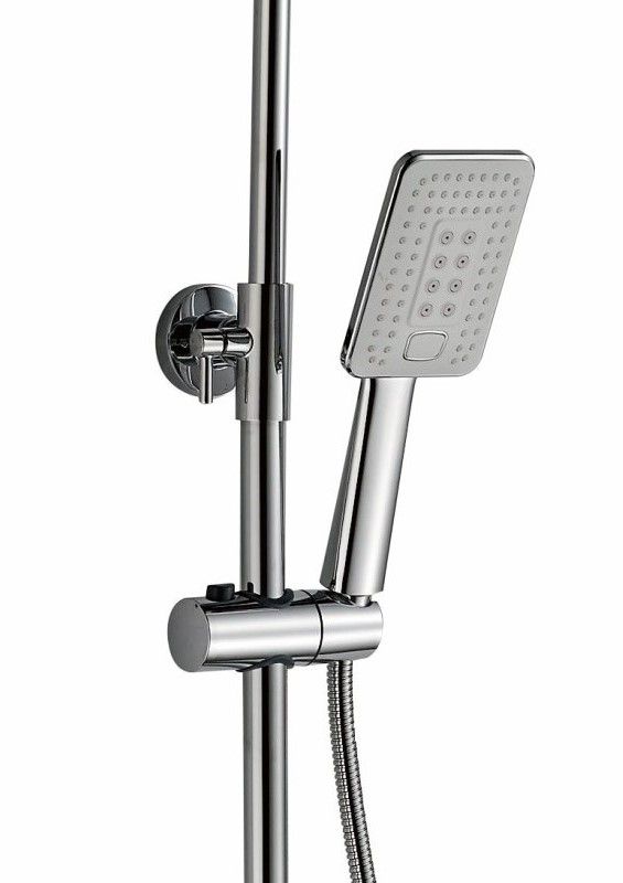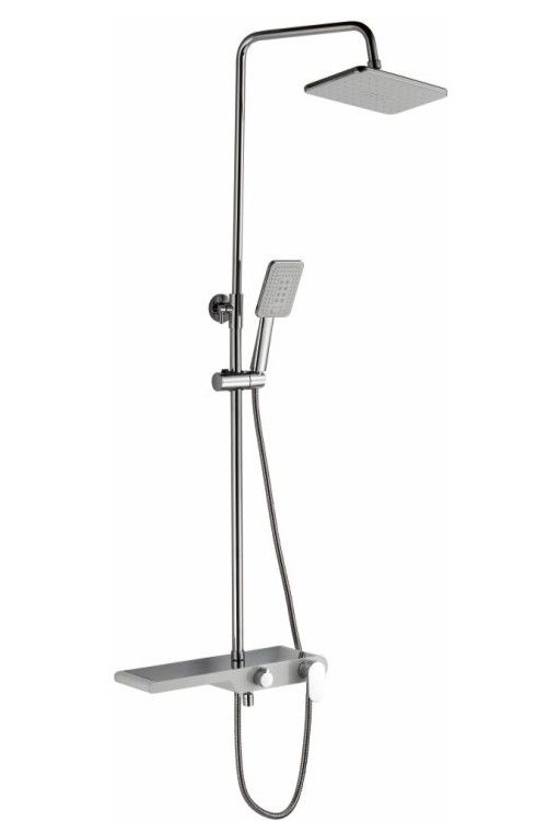 Душевая система Haiba.Изготовлена из высококачественной латуни.Прекрасный тропический душ.Излив для наполнения ванны.Оснащается полкой для гигиенический средств.Душевая штанга регулируется по высоте от 93,7 см до 153,7 см.Переключение потоков осуществляется путем вращения девиатора на корпусе смесителя.