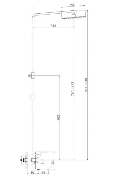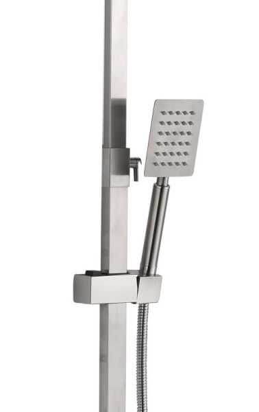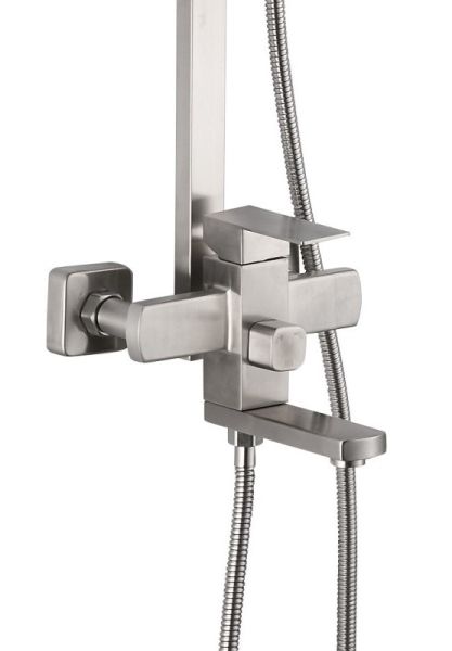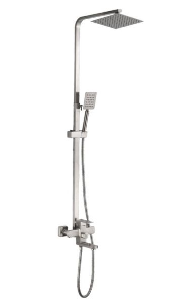 Душевая система Haiba.Изготовлена из высококачественной нержавеющей стали.Прекрасный тропический душ.Излив для наполнения ванны.Душевая штанга регулируется по высоте от 82,3 см до 124,8 см.
