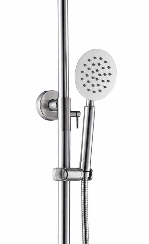 Душевая система Haiba.Изготовлена из высококачественной нержавеющей стали.Прекрасный тропический душ.Излив для наполнения ванны.Душевая штанга регулируется по высоте от 93 см до 125,5 см.