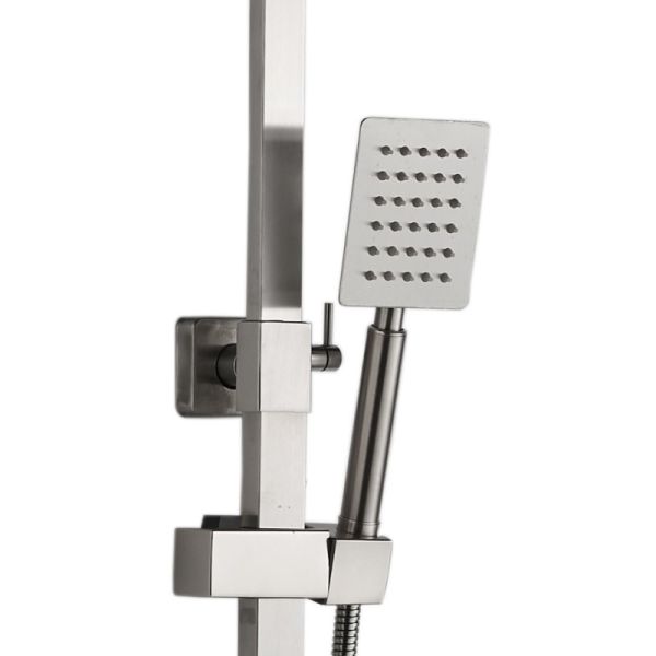 Душевая система Haiba.Изготовлена из высококачественной нержавеющей стали.Прекрасный тропический душ.Излив для наполнения ванны.Душевая штанга регулируется по высоте от 78 см до 131 см.