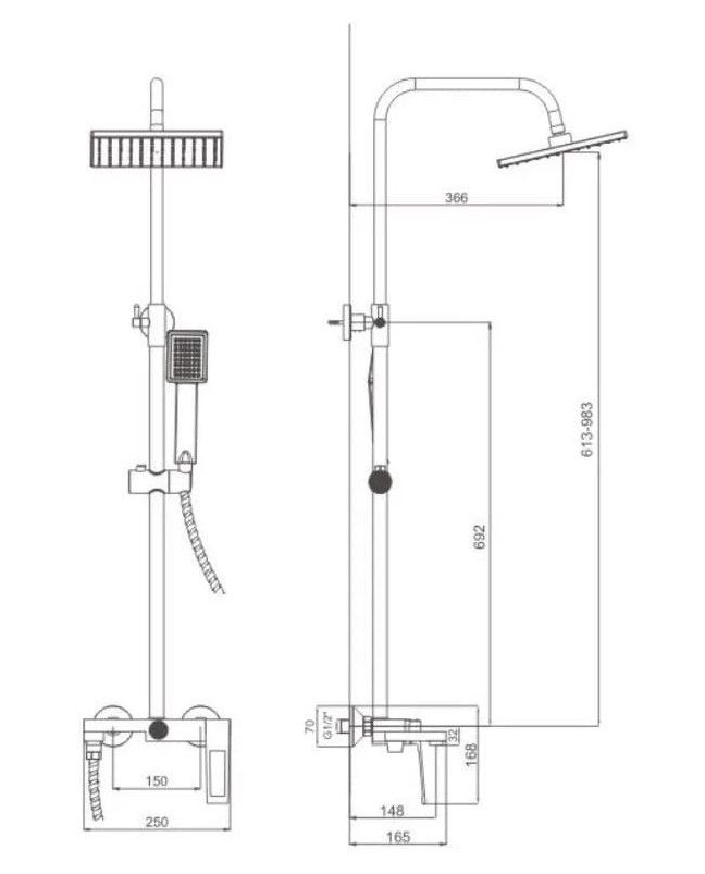 Душевая система Haiba.Изготовлена из высококачественной латуни.Прекрасный тропический душ.Излив для наполнения ванны, который также служит переключателем потока воды на душ.Душевая штанга регулируется по высоте от 78 см до 130 см.
