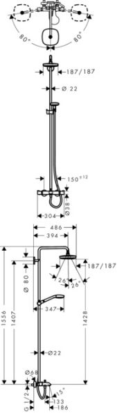 Душевая стойка Hansgrohe Croma Select E 180 2jet 27352400 с термостатом