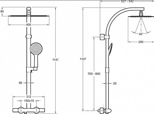 • Размер верхнего душа, см: 40