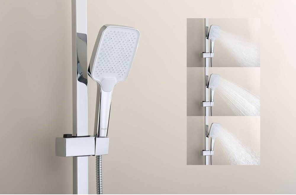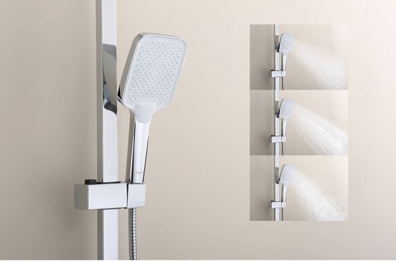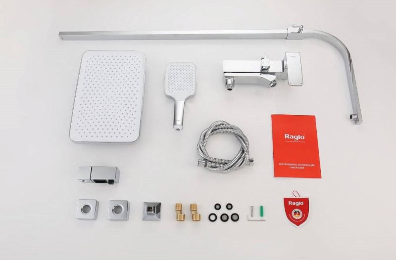 Душевая система Raglo R01.24.Цвет: хром.Материал: латунь.Управление: однорычажное.Механизм: керамический картридж.Излив: поворотный. Аэратор.Регулируемая по высоте душевая штанга: 1026-1566 мм.Форма верхнего душа: прямоугольная.Размер верхнего душа (ШхД): 340х220 мм.Регулируемый по высоте держатель ручного душа.Форма ручного душа: прямоугольная.Количество режимов струи ручного душа: 3.Отверстия для монтажа: 3.Стандарт подводки: G 1/2.Монтаж: на стену.