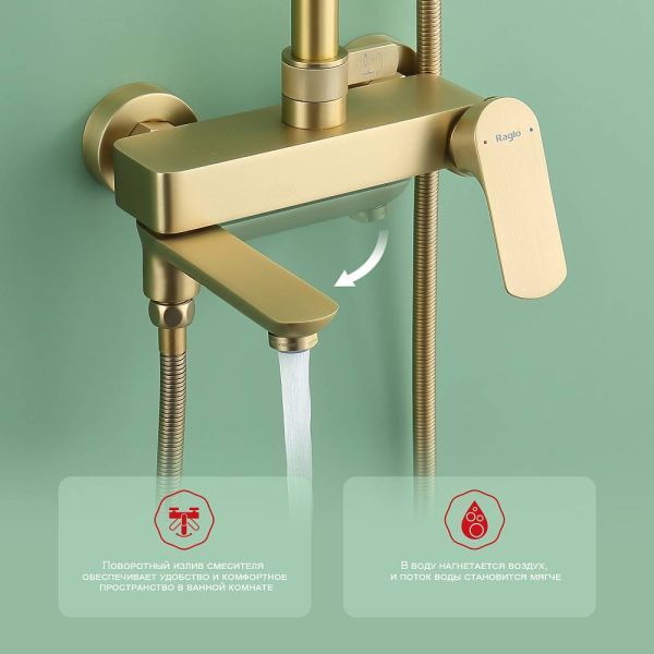 Душевая стойка Raglo R03.24.03 золотой сатин купить