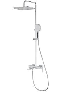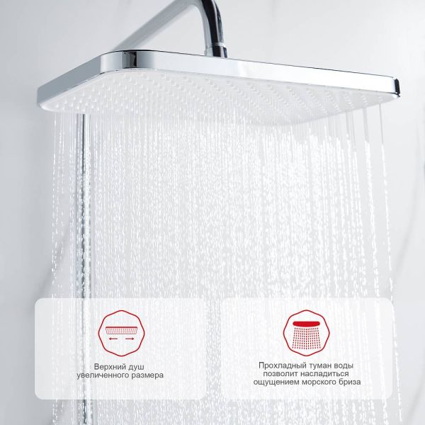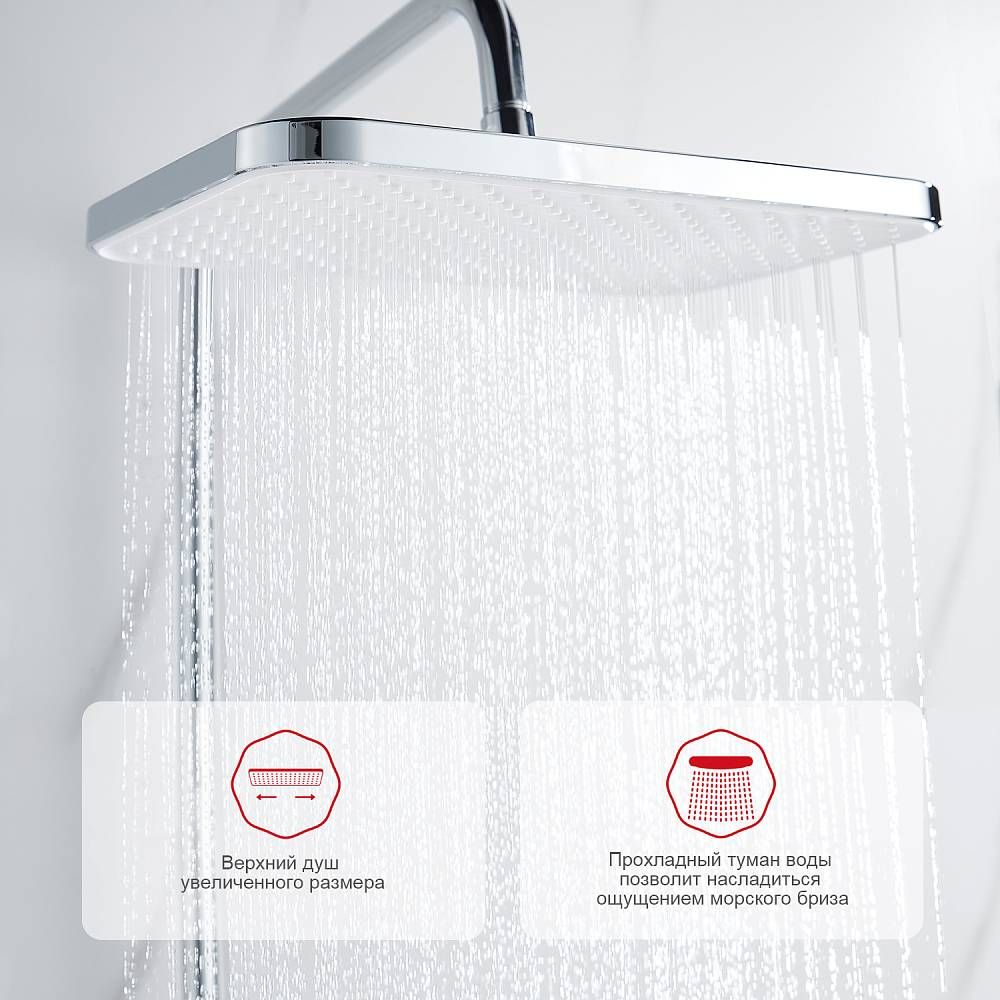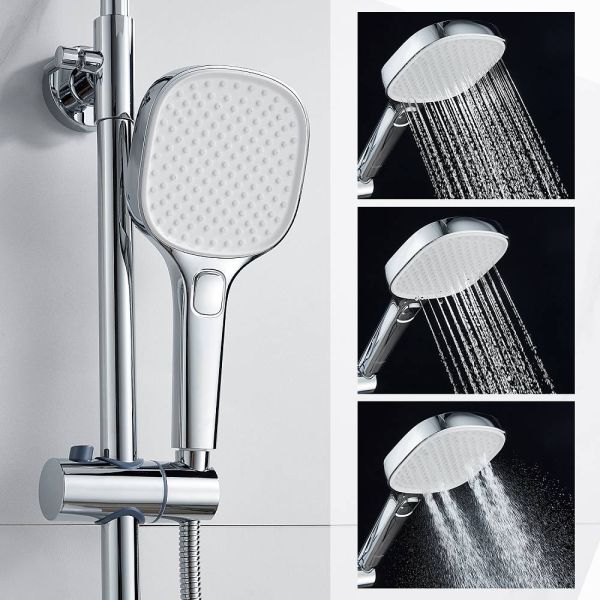 Душевая система Raglo R30.24.Материал: латунь.Управление: однорычажное.Механизм: керамический картридж.Излив: поворотный. Аэратор.Регулируемая по высоте душевая штанга: 630-1280 мм.Форма верхнего душа: прямоугольная.Размер верхнего душа (ШхД): 320х210 мм.Регулируемый по высоте и наклону держатель ручного душа.Высота ручного душа: 247 мм.Количество режимов струи ручного душа: 3.Отверстия для монтажа: 3.Стандарт подводки: G 1/2.Монтаж: на стену.