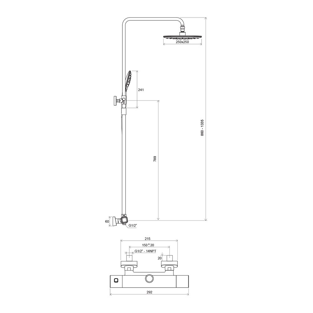 Душевая стойка Ravak 10° TD 091.00/150 X070103 с термостатом купить