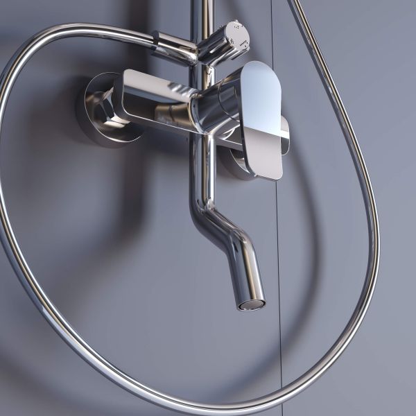 - Головной душ из высокопрочного ABS-пластика оснащён со шарнирным креплением, что позволяет выбрать необходимый угол направления воды;