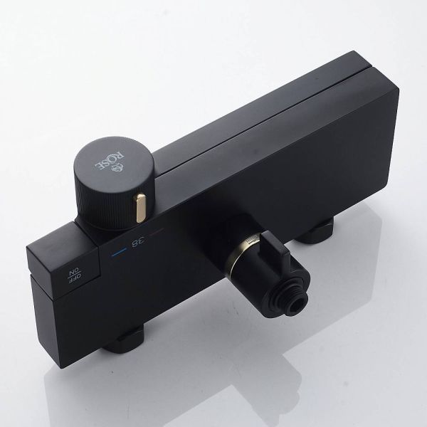 Душевая система с термостатом Rose R1896H, черный.Монтаж: настенный.Стилистика дизайна: современный стиль.Управление: термостат.Размер верхнего душа: 31,5x21.Форма верхнего душа: прямоугольная.