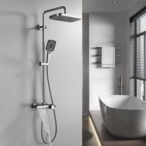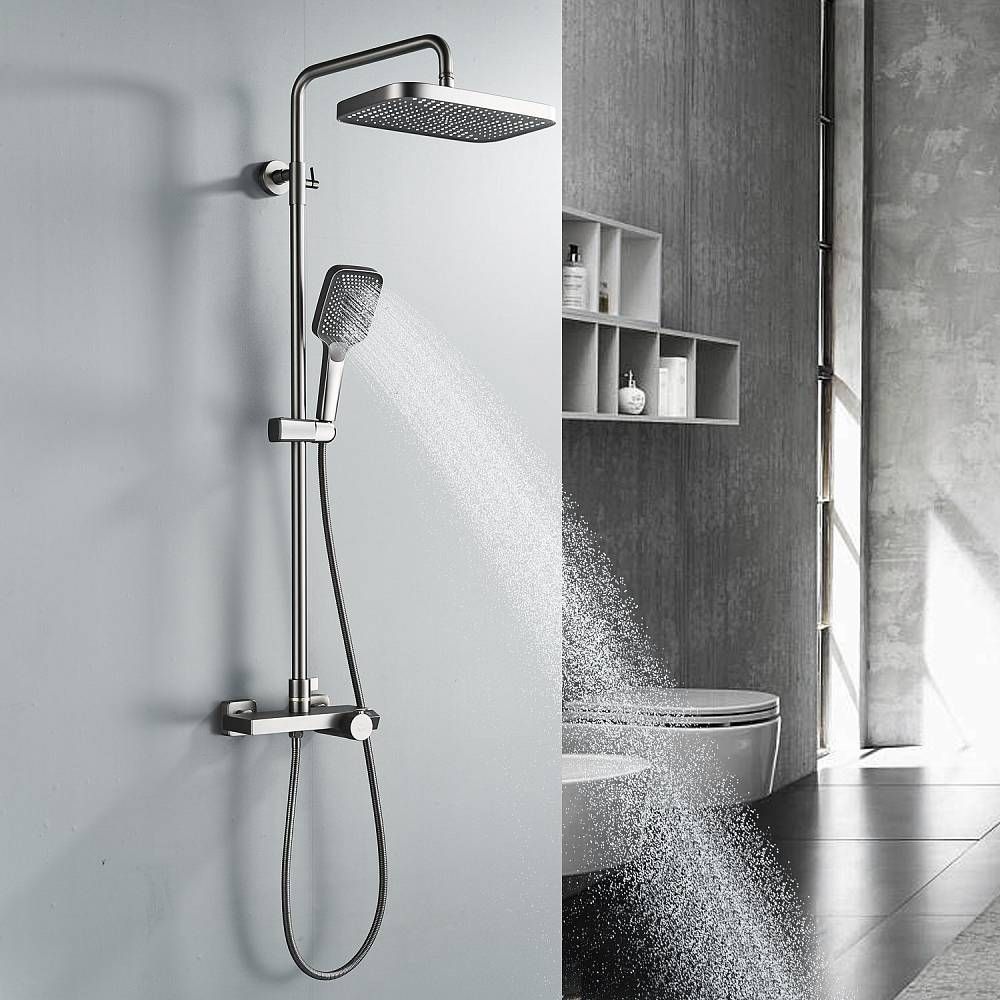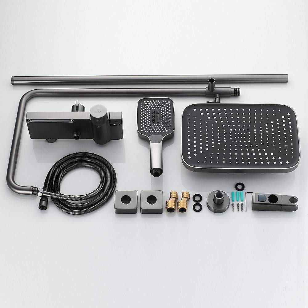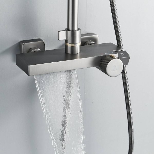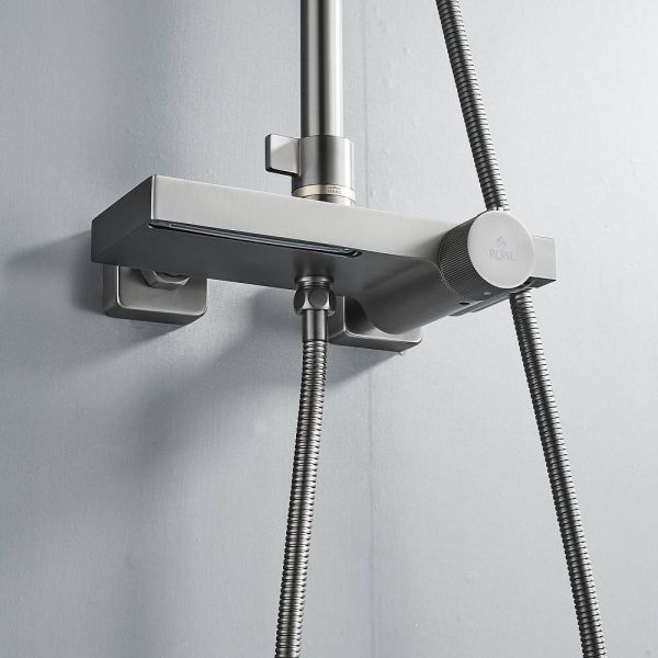 Душевая система с термостатом Rose R1896T-6, пепельный.Монтаж: настенный.Стилистика дизайна: современный стиль.Управление: термостат.Размер верхнего душа: 31,5x21.Форма верхнего душа: прямоугольная.