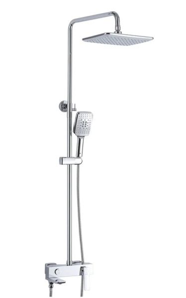 Душевая система Rose R2736, хром.Монтаж: настенный.Стилистика дизайна: современный стиль.Управление: рычажное.Размер верхнего душа: 28x18.Форма верхнего душа: прямоугольная.