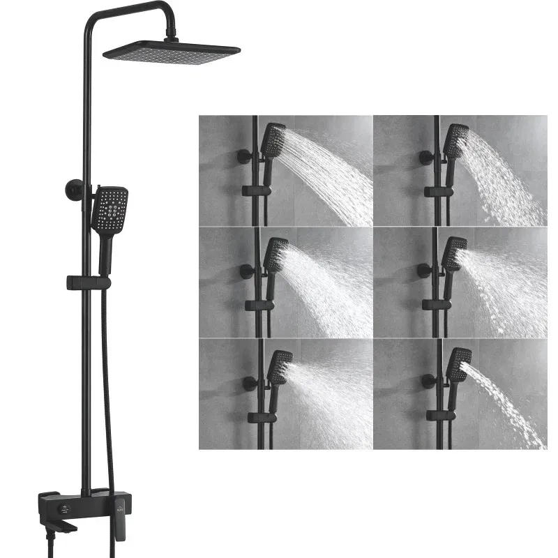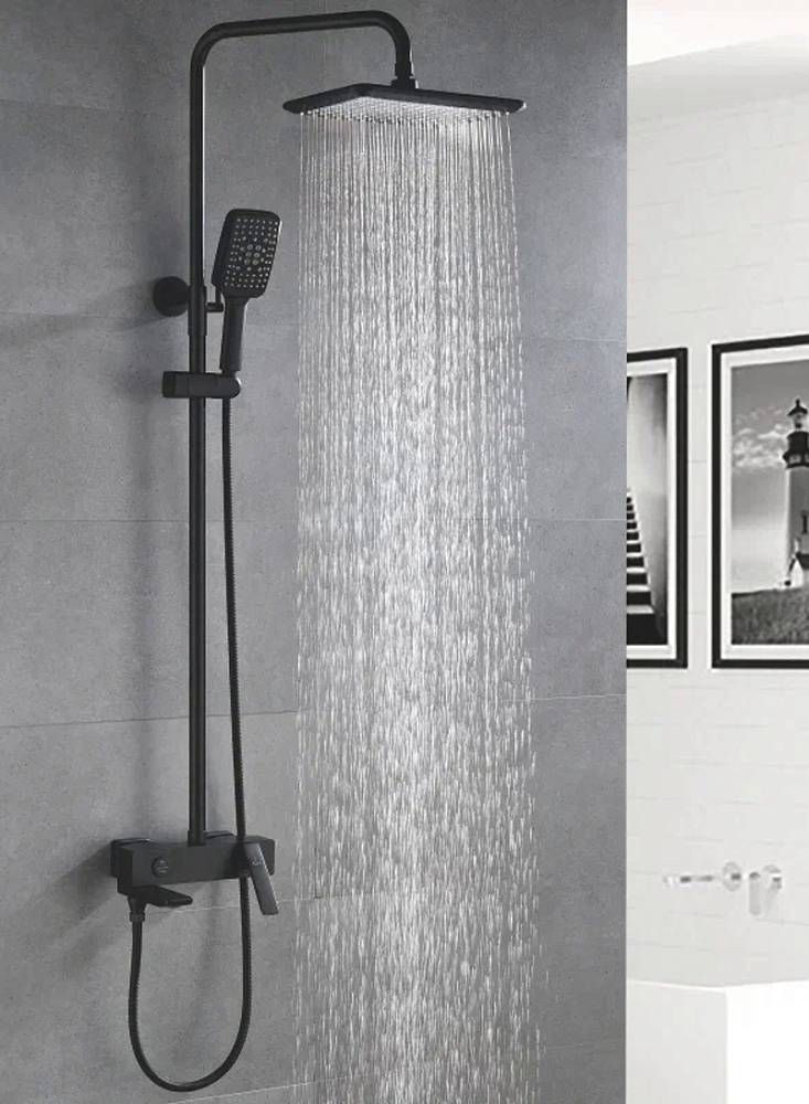 Душевая система Rose R2736H, черный.Монтаж: настенный.Стилистика дизайна: современный стиль.Управление: рычажное.Размер верхнего душа: 28x18.Форма верхнего душа: прямоугольная.