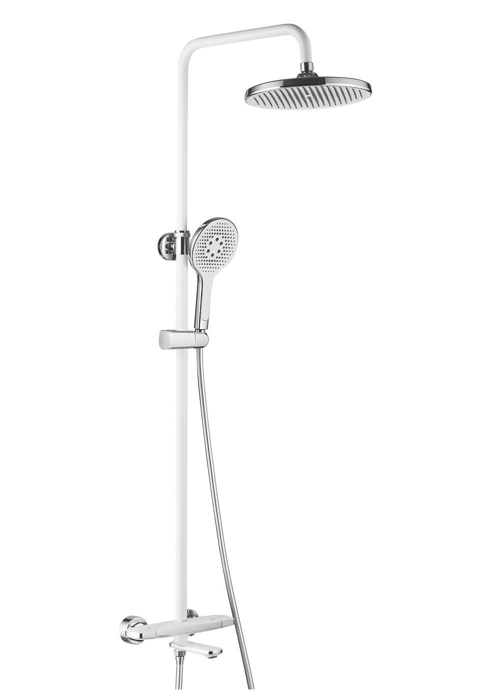 Душевая система с термостатом Rose R3996F, белый/хром.Монтаж: настенный.Стилистика дизайна: современный стиль.Управление: термостат.Размер верхнего душа: 25x25.Форма верхнего душа: круглая.