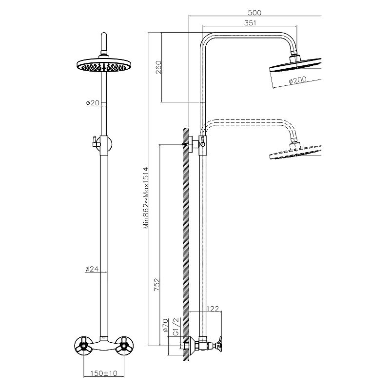 Душевая стойка Rossinka Q02-44 для ванны и душа купить