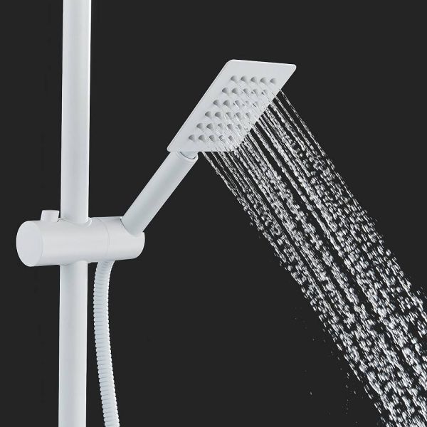 Душевая система Shevanik S3096C в белом матовом стиле — это стильное и функциональное решение для вашей ванной комнаты. Изготовленная из высококачественной латуни, она станет надёжным элементом интерьера на долгие годы. Термостатический картридж обеспечивает безопасность и комфорт при использовании, а излив для наполнения ванны легко складывается, когда не нужен.