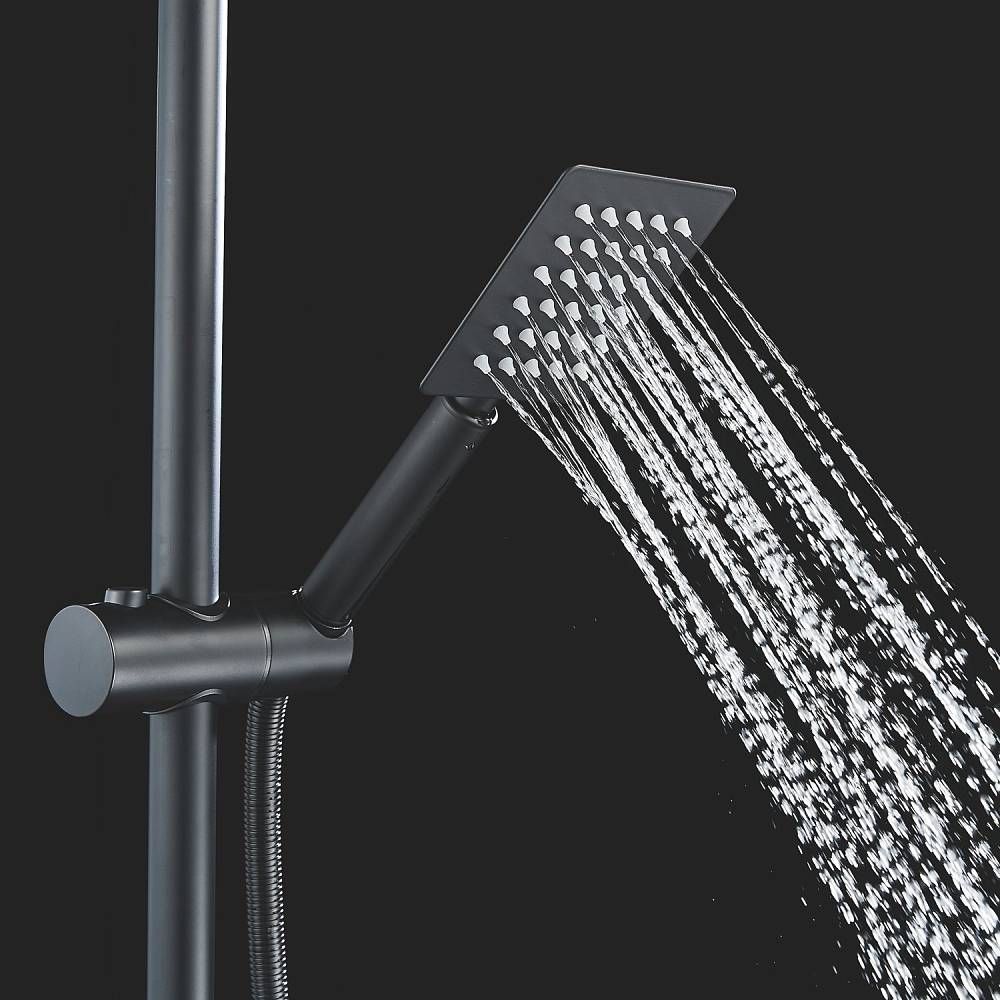 Душевая система Shevanik S3096H в стильном черном матовом цвете — это практичное и функциональное решение для вашей ванной комнаты. Изготовленная из высококачественной латуни, она станет надёжным элементом интерьера на долгие годы. Термостатический картридж обеспечивает безопасность и комфорт при использовании, а излив для наполнения ванны легко складывается, когда не нужен.