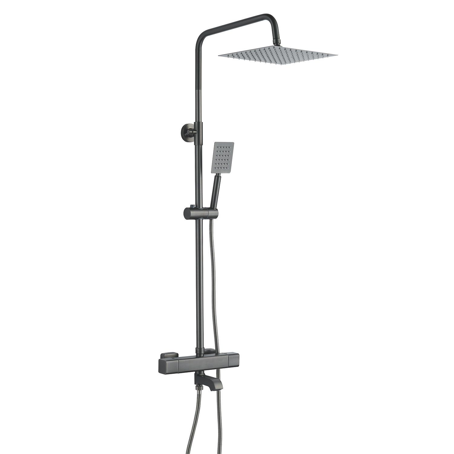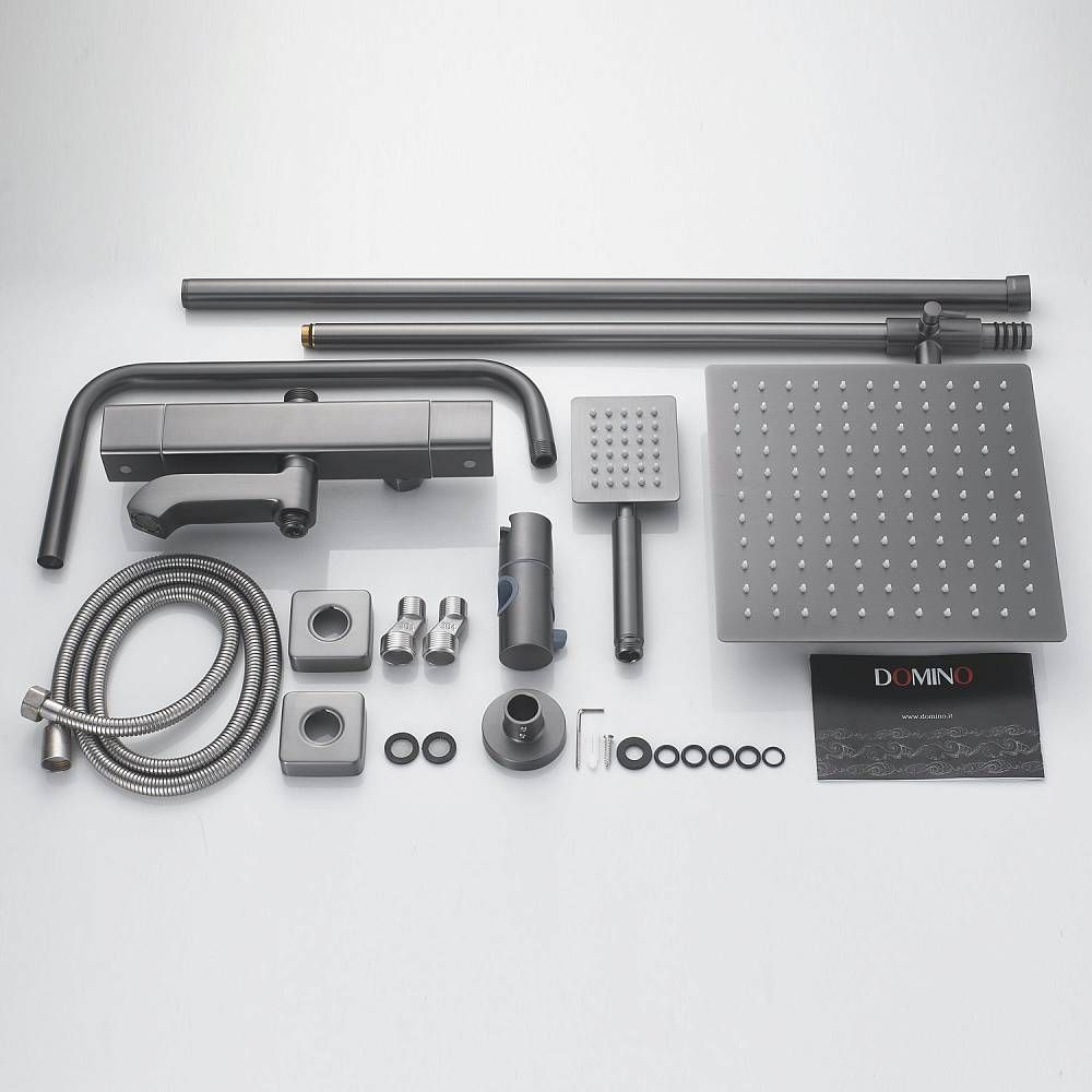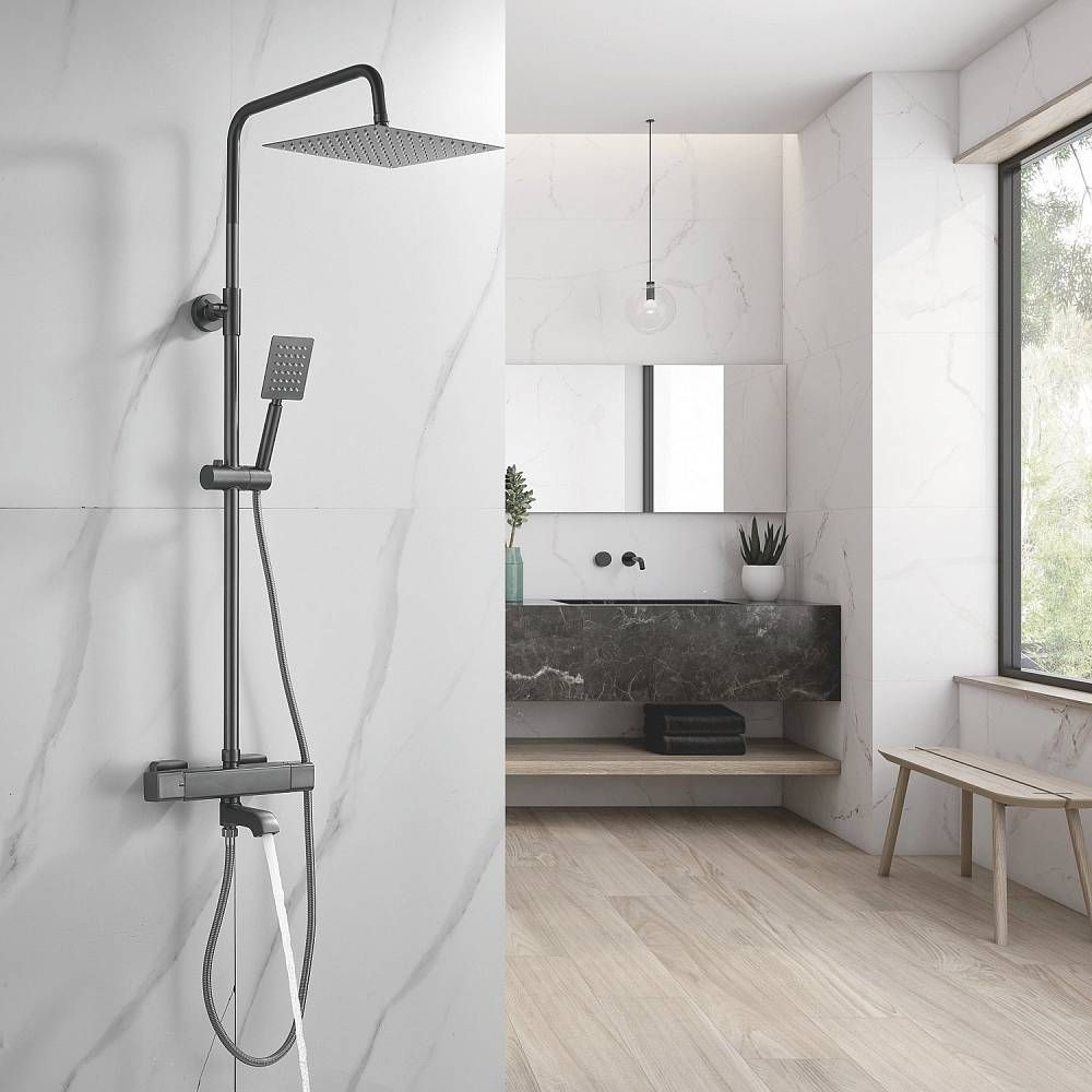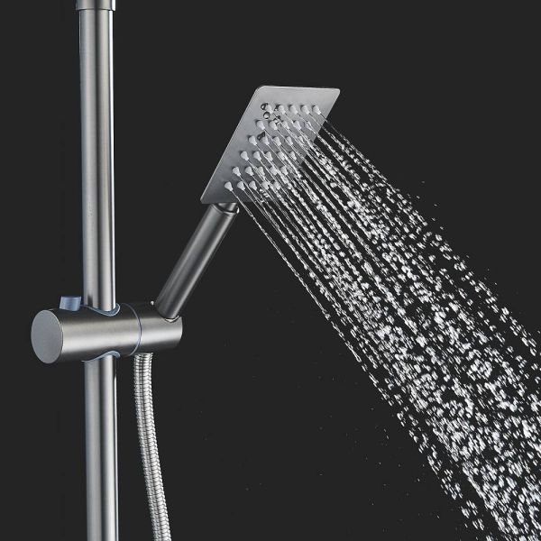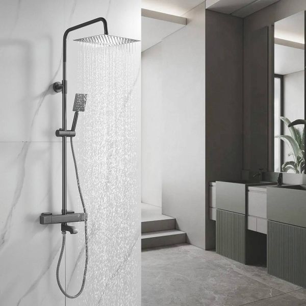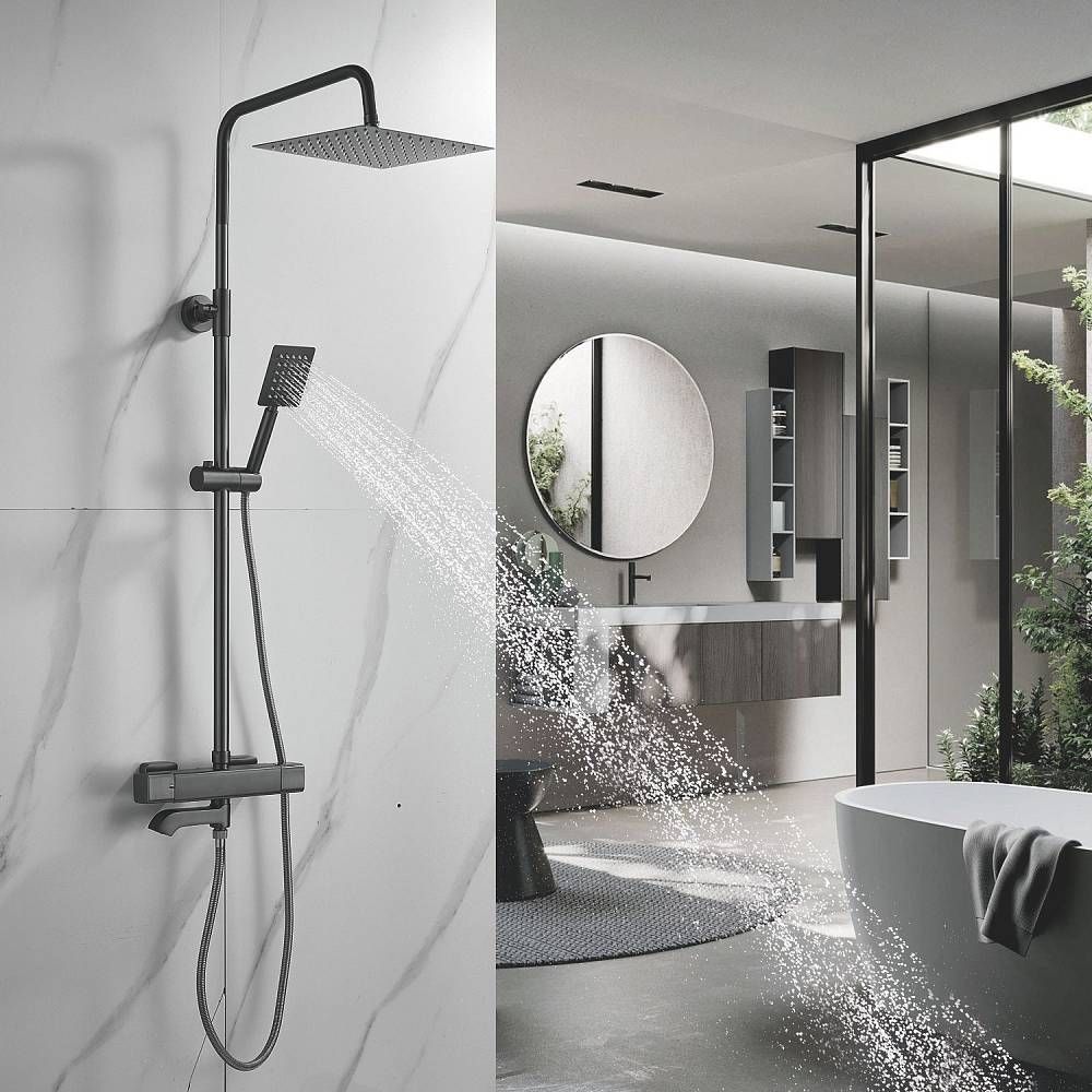 Душевая система Shevanik S3096T в цвете "оружейная сталь" — это стильное и функциональное решение для вашей ванной комнаты. Изготовленная из высококачественной латуни, она станет надёжным элементом интерьера на долгие годы. Термостатический картридж обеспечивает безопасность и комфорт при использовании, а излив для наполнения ванны легко складывается, когда не нужен.