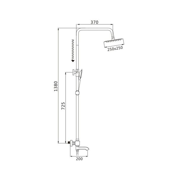 Верхний душ регулируется по высоте и наклону, что позволяет настроить его под индивидуальные предпочтения. Душевая лейка также имеет регулировку по высоте и наклону, обеспечивая максимальный комфорт во время принятия душа. Душевой шланг длиной 150 см гарантирует удобство использования.