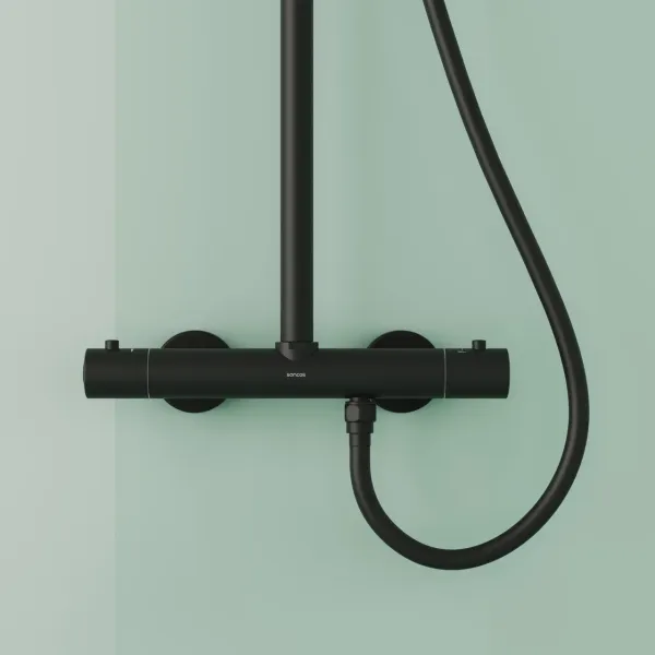 Душевая стойка Sancos Game SC3002MB с термостатом чёрный матовый купить
