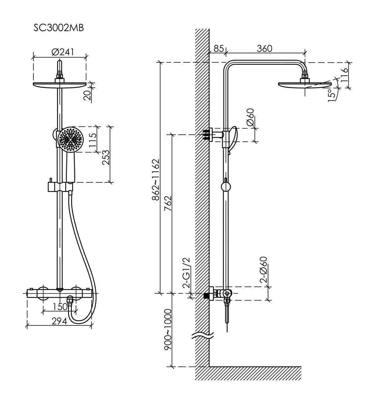 Душевая стойка SANCOS Game для душа с термостатическим смесителем, верхним, ручным душем и шлангом в комплекте, цвет черный матовый, арт. SC3002MB