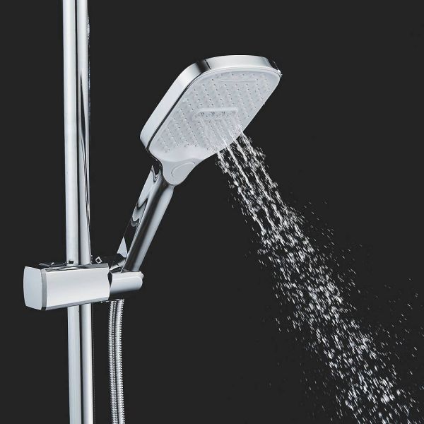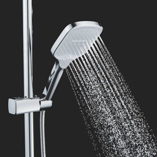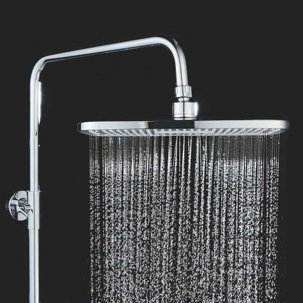 Верхний душ размером 310x210 мм из ABS-пластика легко регулируется по наклону благодаря встроенному шарниру. Он также оснащен самоочищающимися силиконовыми форсунками, которые защищают его от известкового налета, обеспечивая всегда чистый и сильный поток воды.