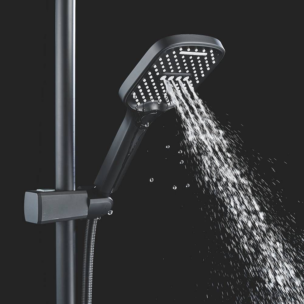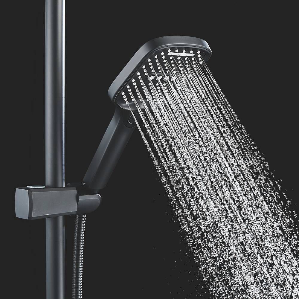 Верхний душ размером 310x210 мм из ABS-пластика легко регулируется по наклону благодаря встроенному шарниру. Он также оснащен самоочищающимися силиконовыми форсунками, которые защищают его от известкового налета, обеспечивая всегда чистый и сильный поток воды.