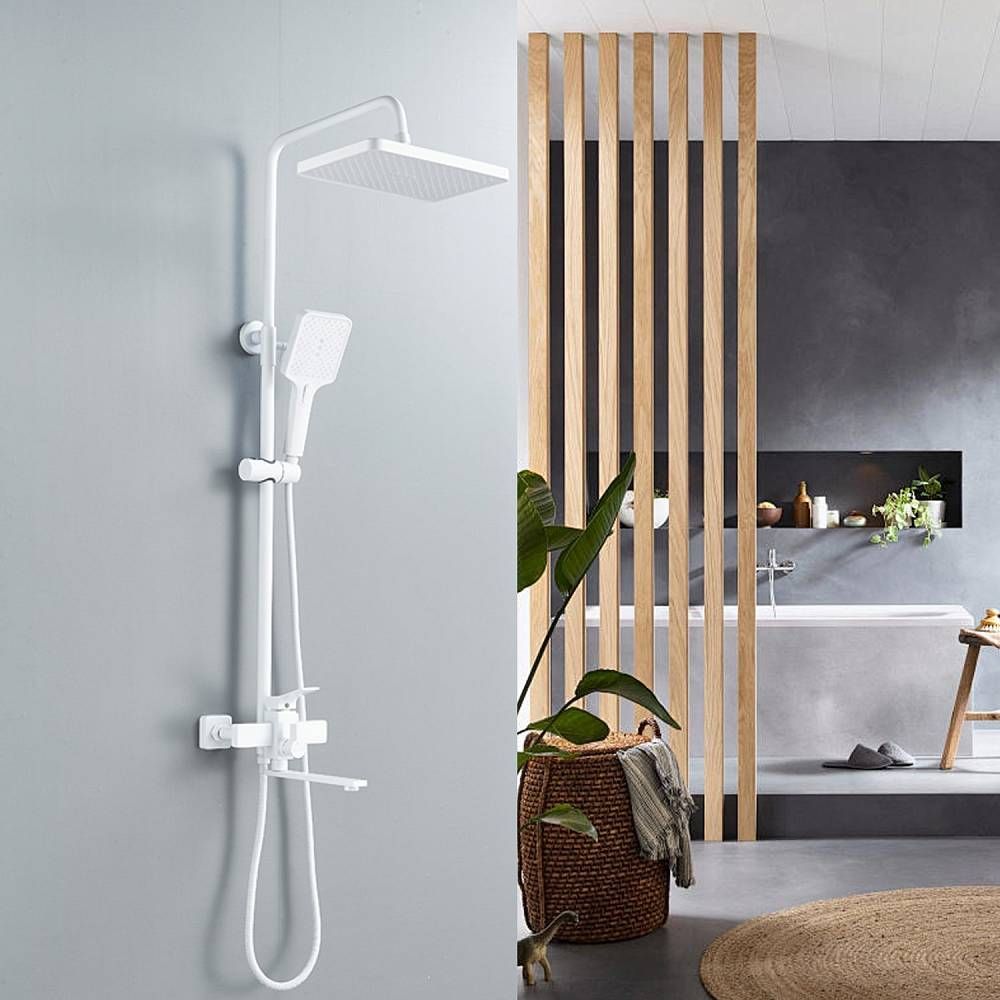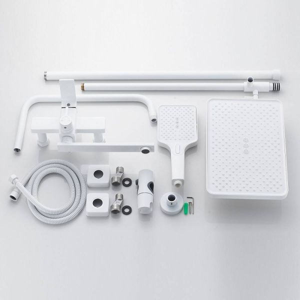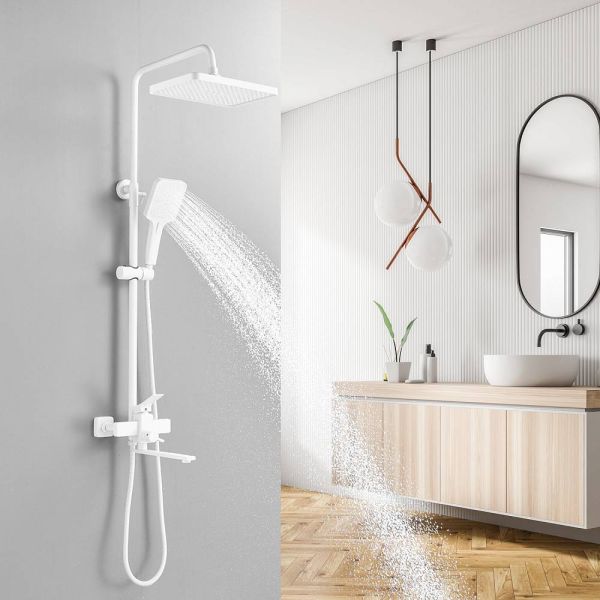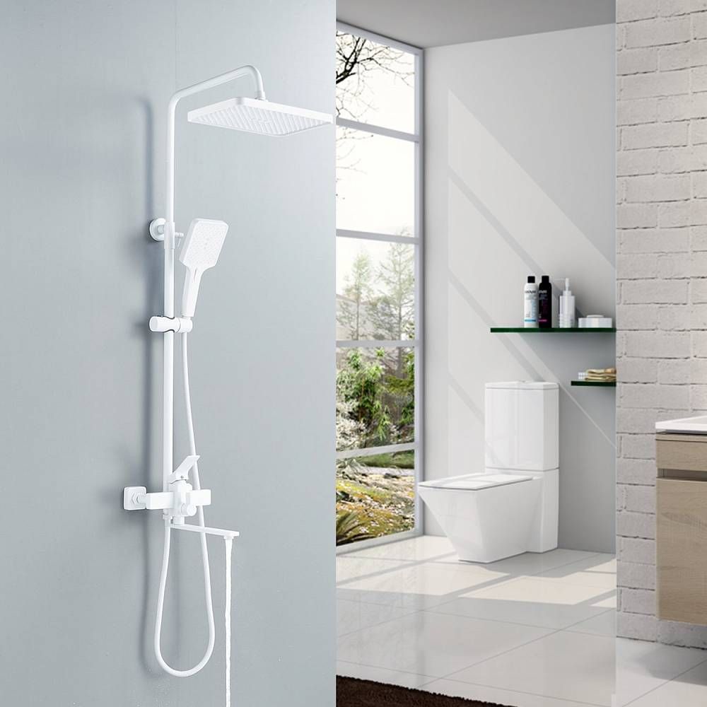 Душевая система Shevanik S6136C в белом цвете - идеальное решение для вашей ванной комнаты. Изготовленная из прочной латуни, она гарантирует долговечность и надежность использования.