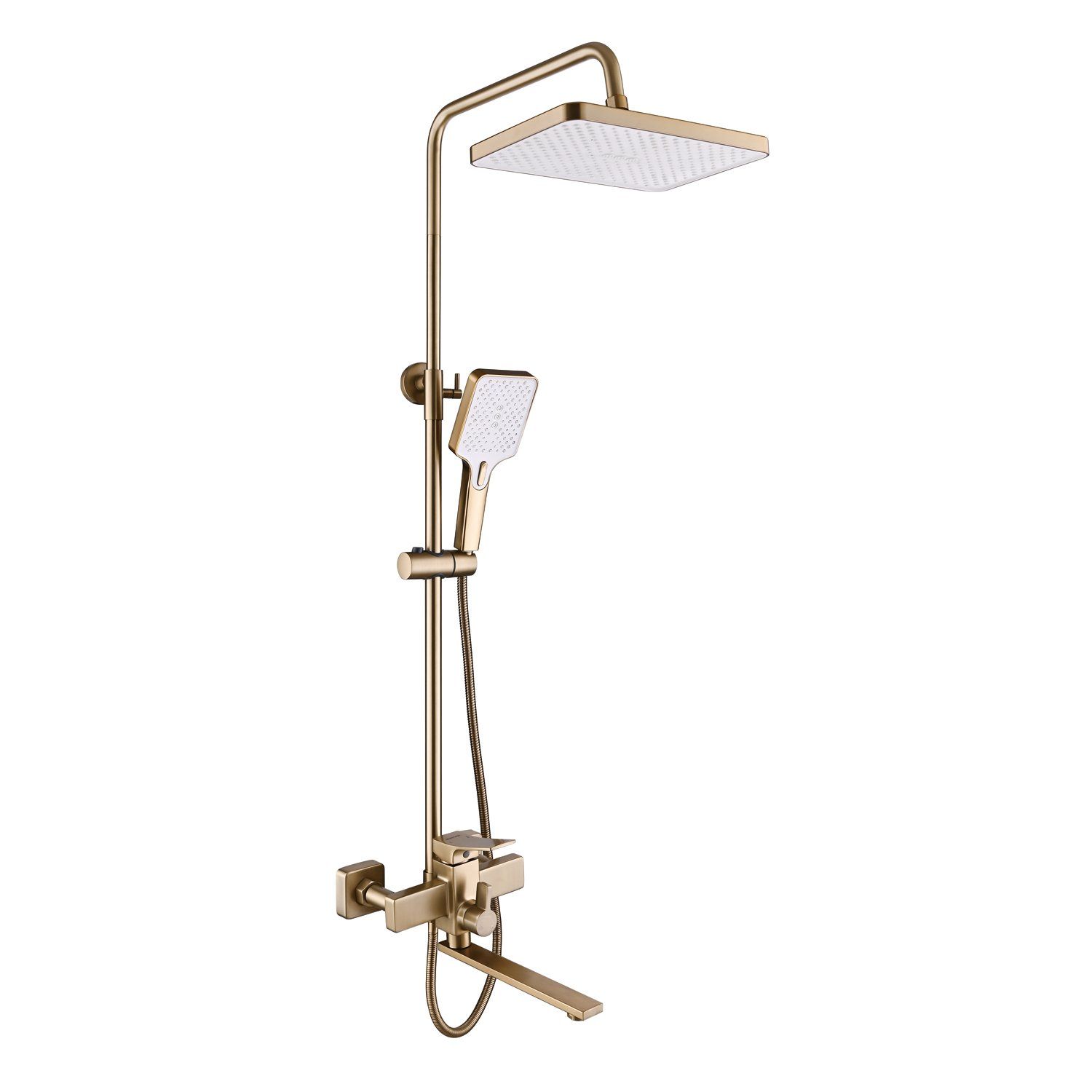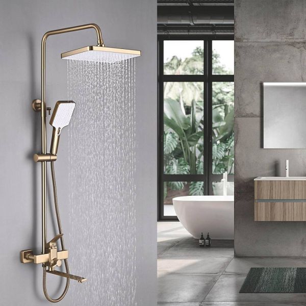 Душевая система Shevanik S6136G в цвете "золотой сатин" - идеальное решение для вашей ванной комнаты. Изготовленная из прочной латуни, она гарантирует долговечность и надежность использования.