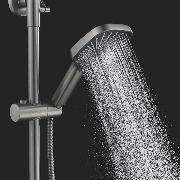 Ручной душ с 3 режимами работы также изготовлен из качественного ABS-пластика, регулируется по высоте и наклону для оптимального комфорта использования.