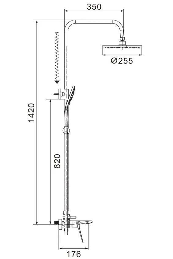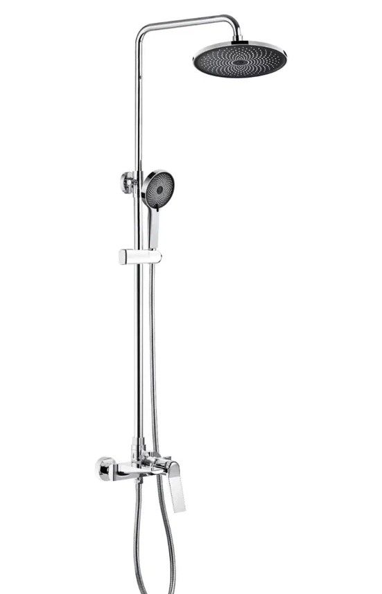 Душевая система Shevanik S8436, хром.Количество режимов струи: 3.Размер верхнего душа: 25,5x25,5 см.Управление: рычажное.Излив для наполнения ванны: да.