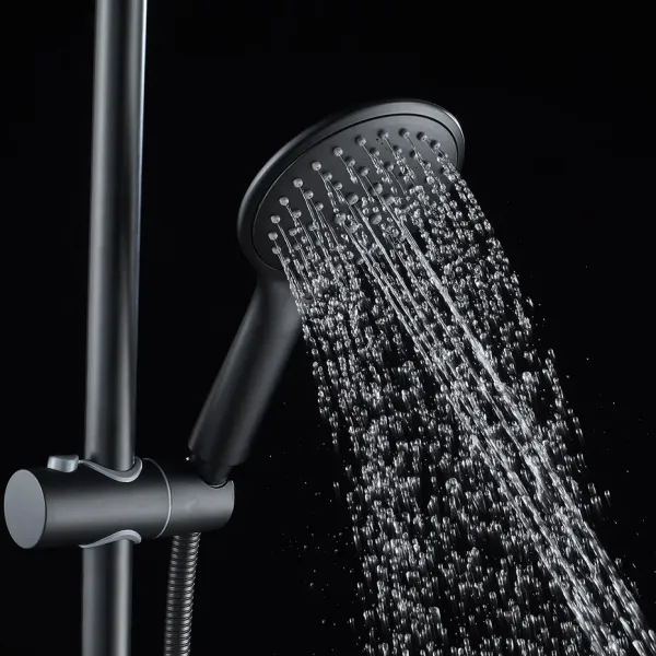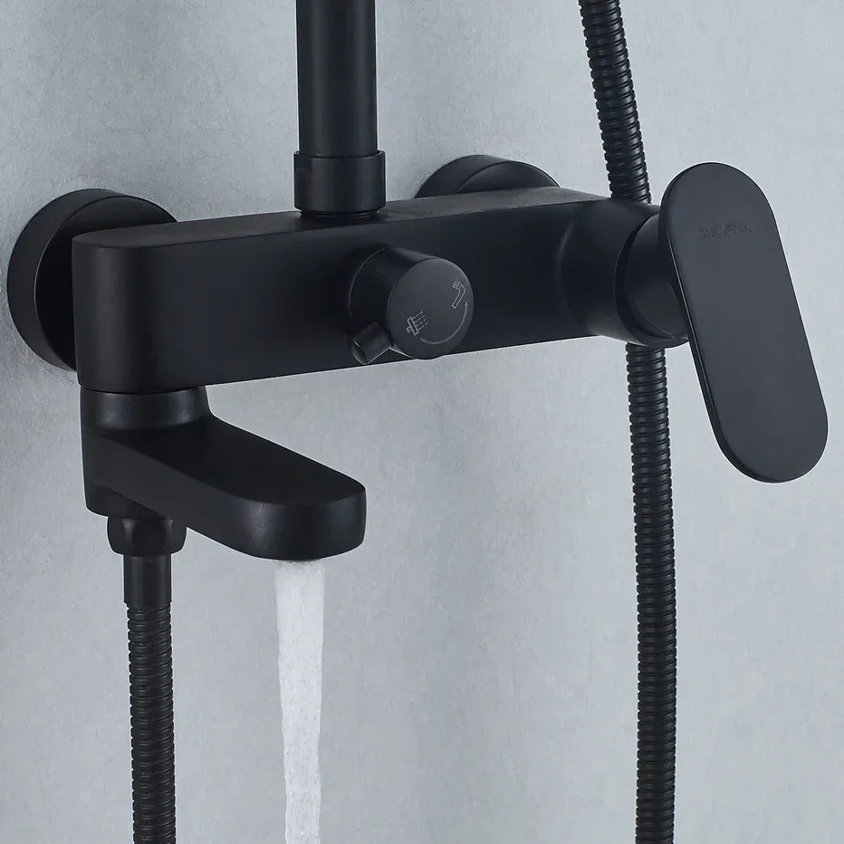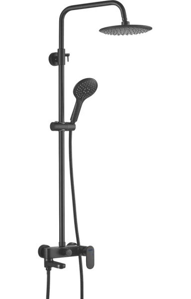 Душевая система Shevanik S8736H, черный.Количество режимов струи: 3.Размер верхнего душа: 23x23 см.Управление: рычажное.Излив для наполнения ванны: да.