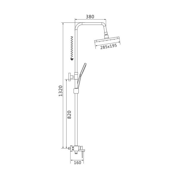 Телескопическая штанга позволяет регулировать высоту душевой системы, обеспечивая удобство использования.