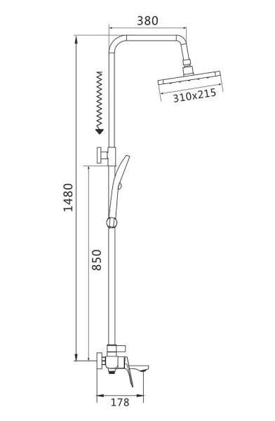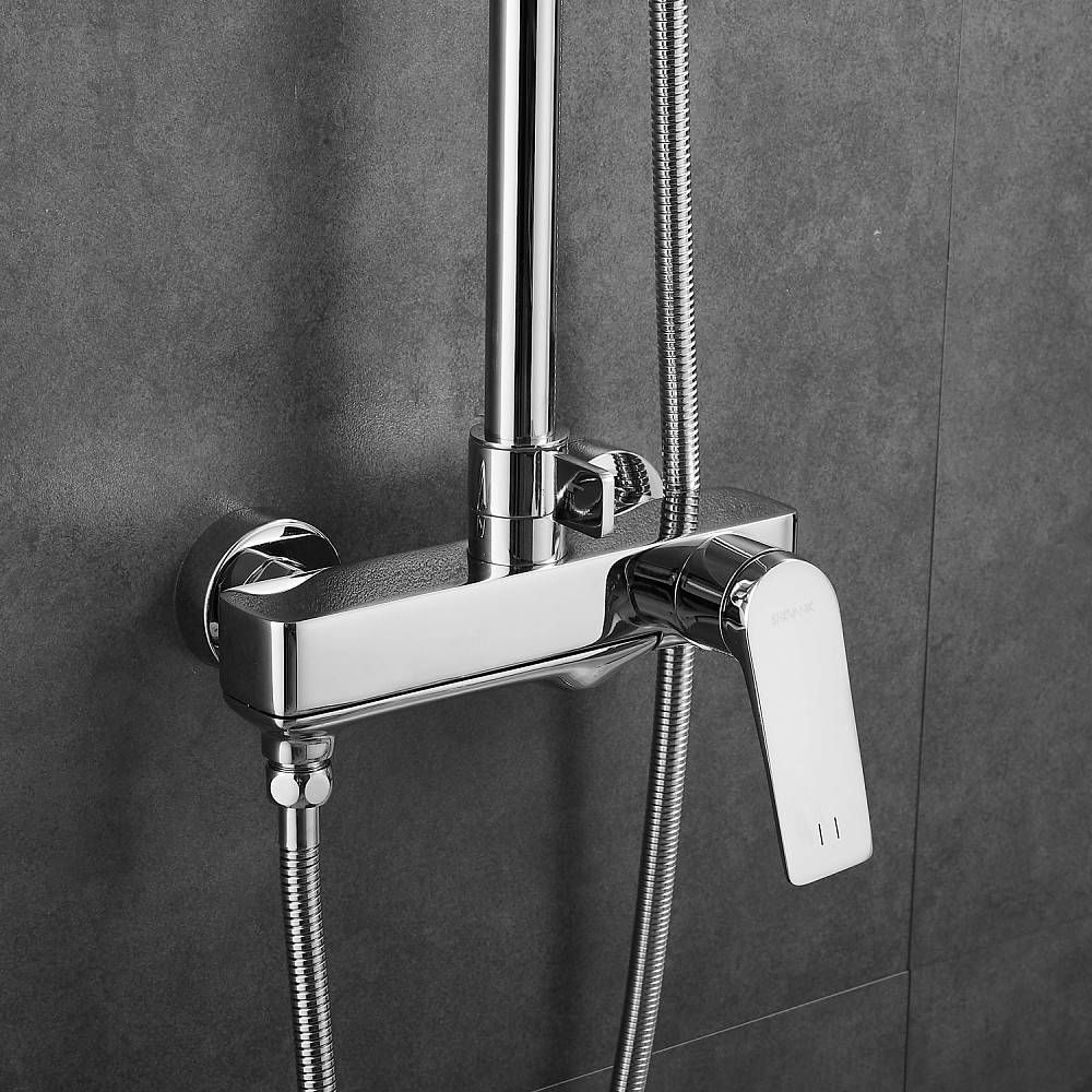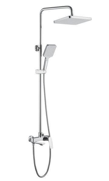 Душевая система Shevanik S9136, хром.Количество режимов струи: 3.Размер верхнего душа: 31x21,5 см.Управление: рычажное.Излив для наполнения ванны: да.