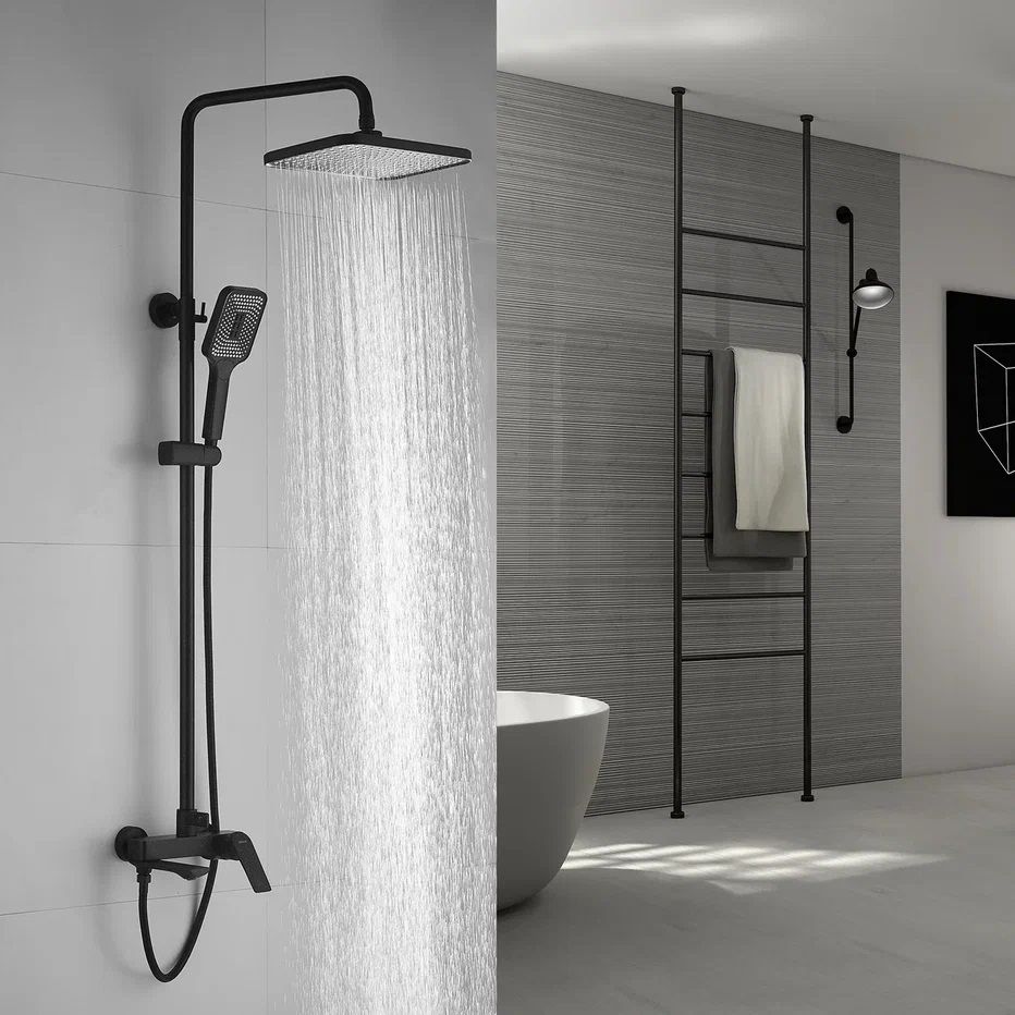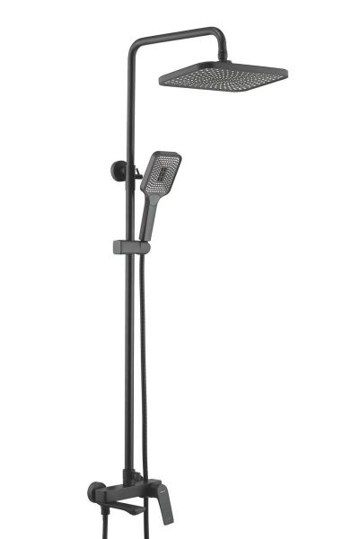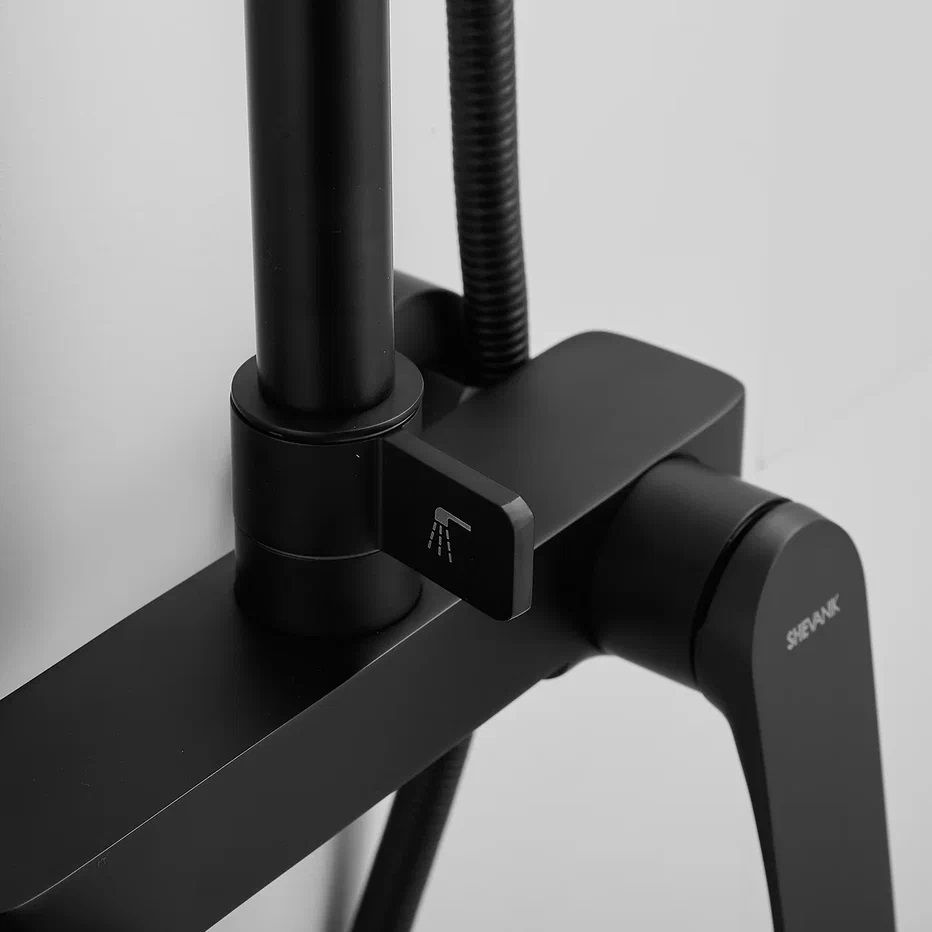 Душевая система Shevanik S9136H, черный.Количество режимов струи: 3.Размер верхнего душа: 31x21,5 см.Управление: рычажное.Излив для наполнения ванны: да.