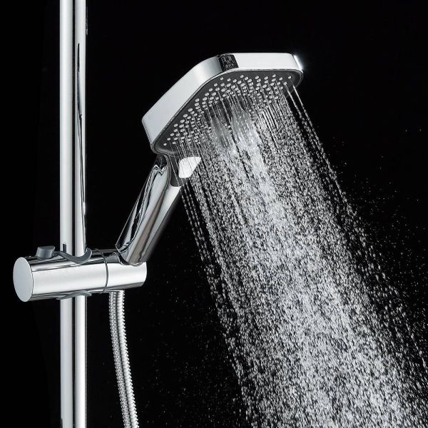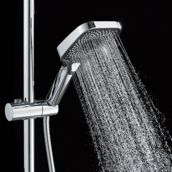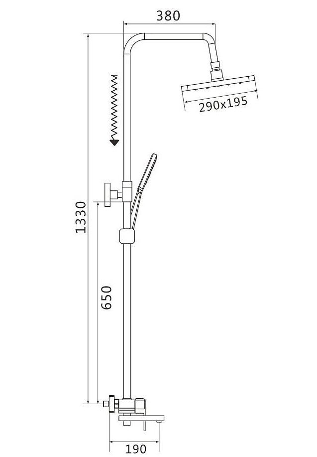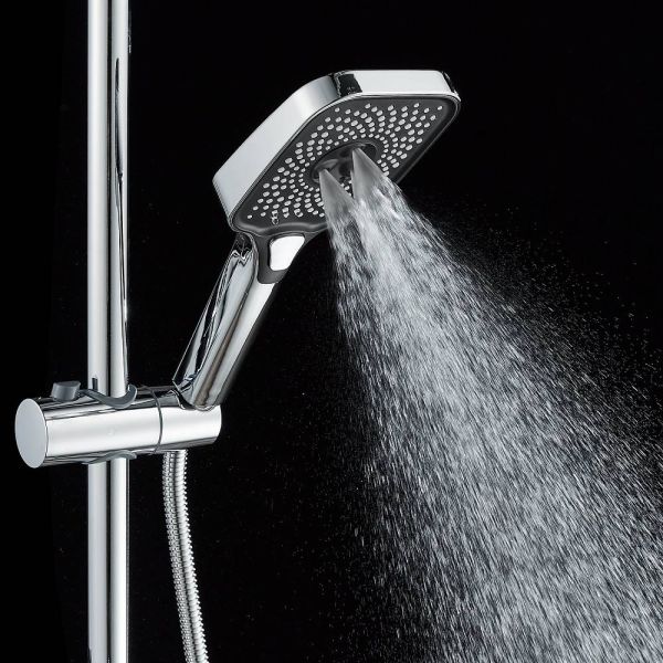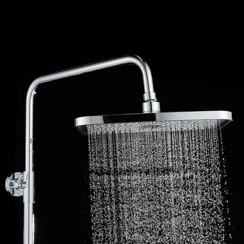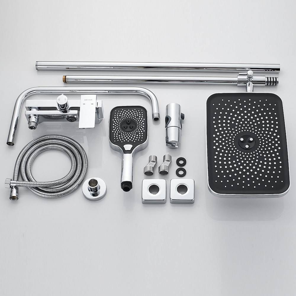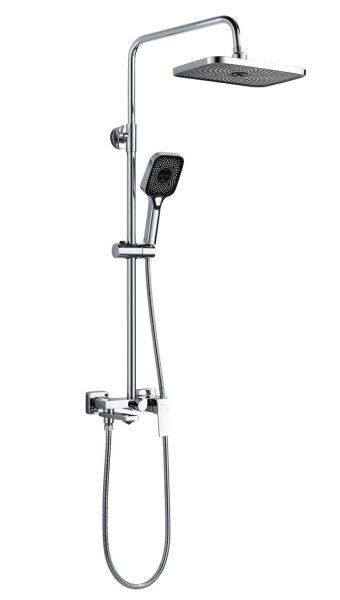 Душевая система Shevanik S9636, хром.Количество режимов струи: 3.Размер верхнего душа: 29x19,5 см.Управление: рычажное.Излив для наполнения ванны: да.