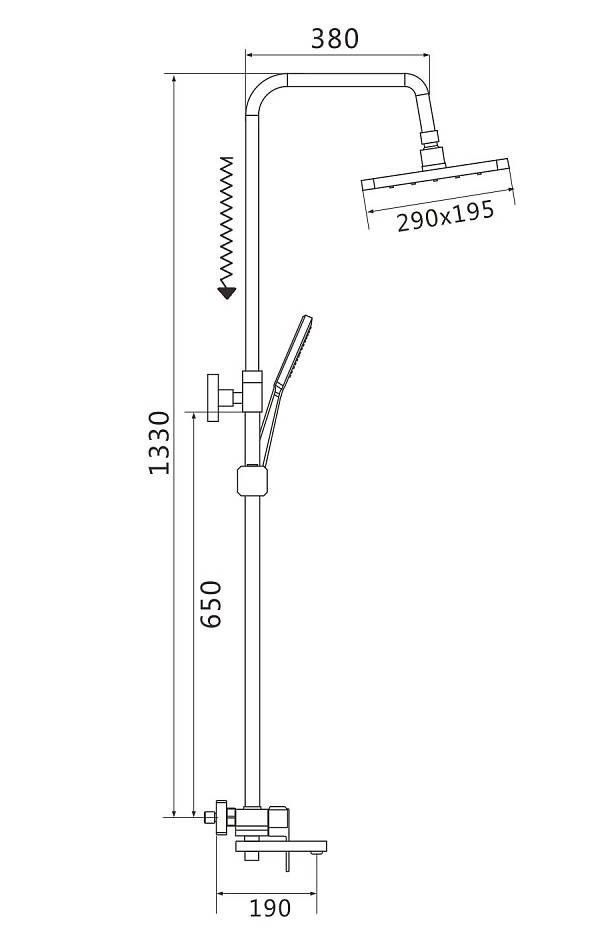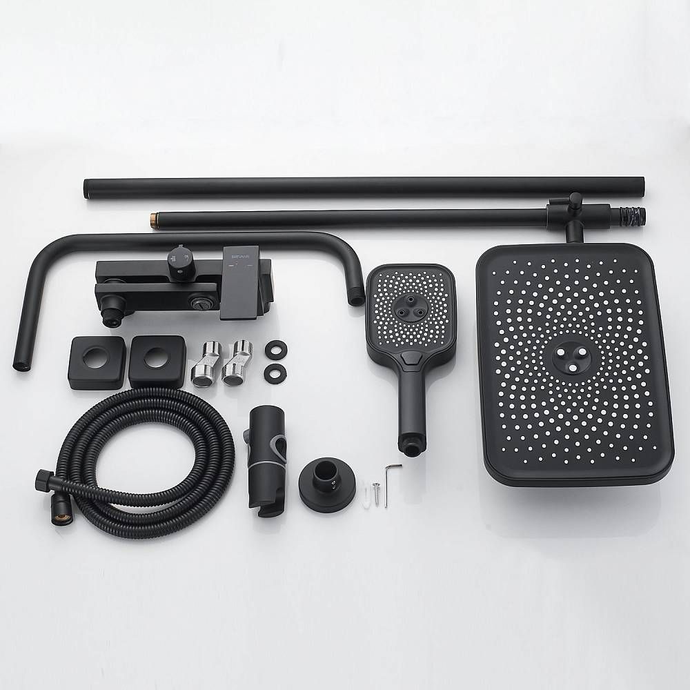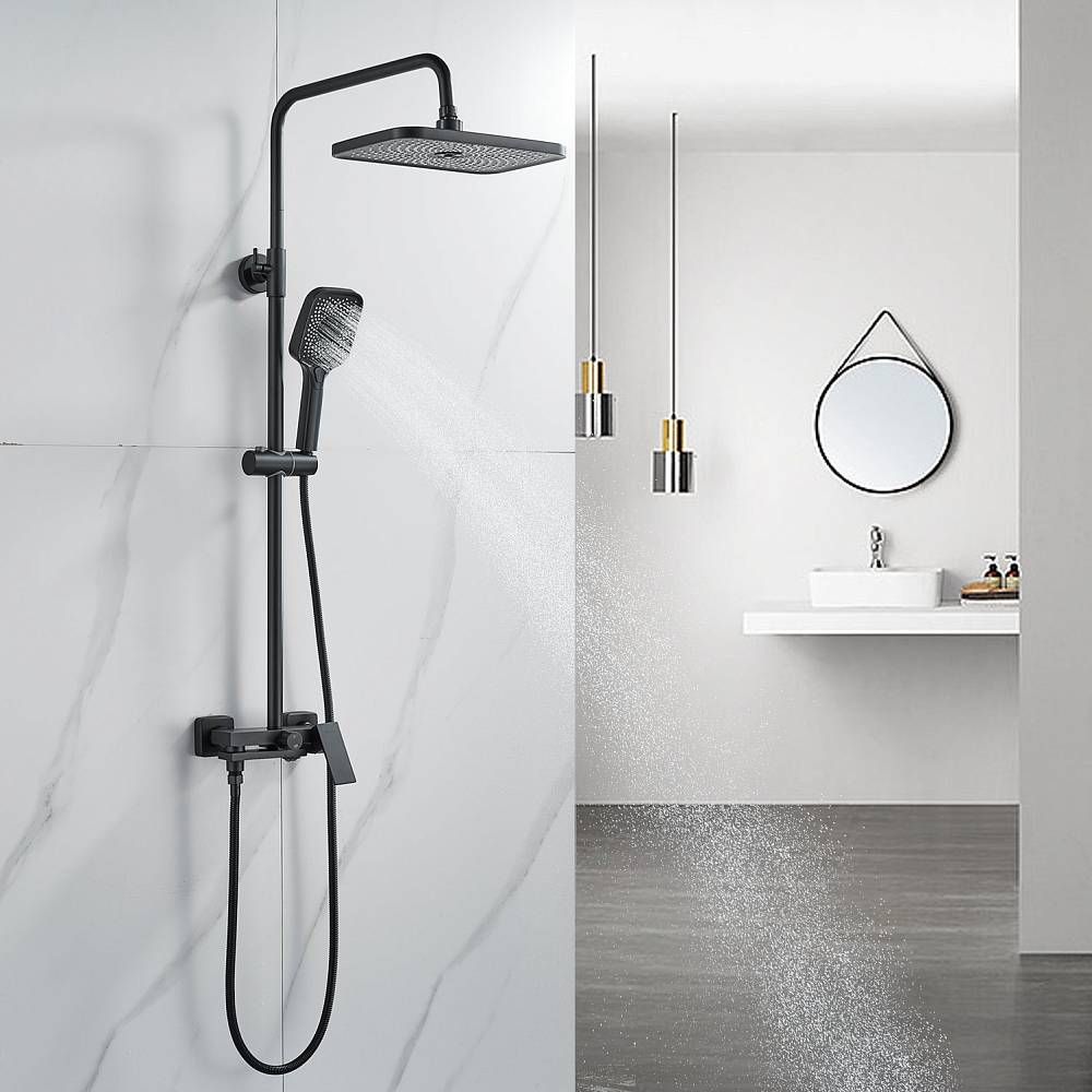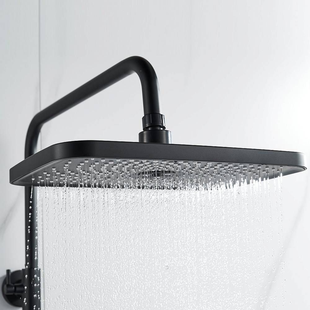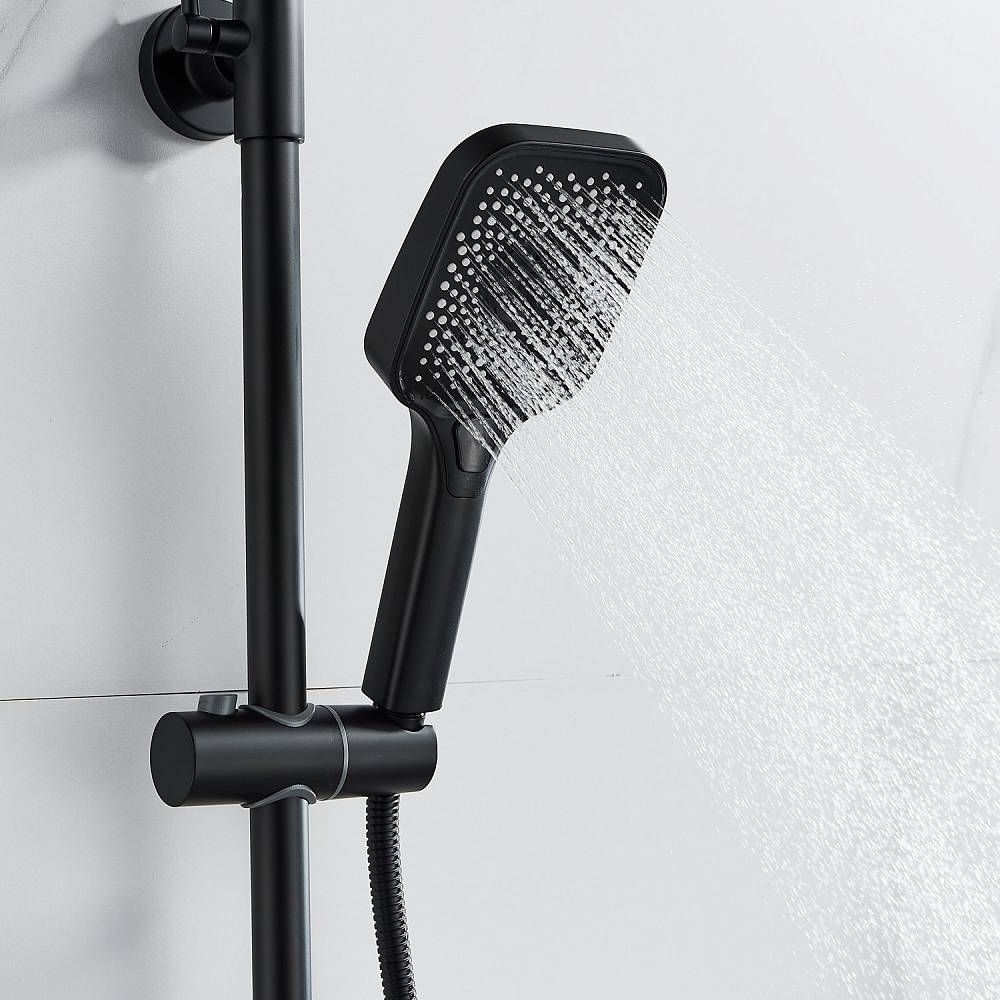 Душевая система Shevanik S9636H, черный.Количество режимов струи: 3.Размер верхнего душа: 29x19,5 см.Управление: рычажное.Излив для наполнения ванны: да.