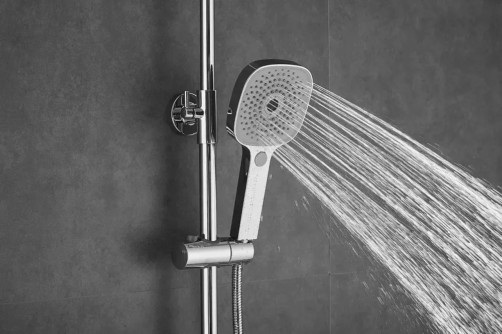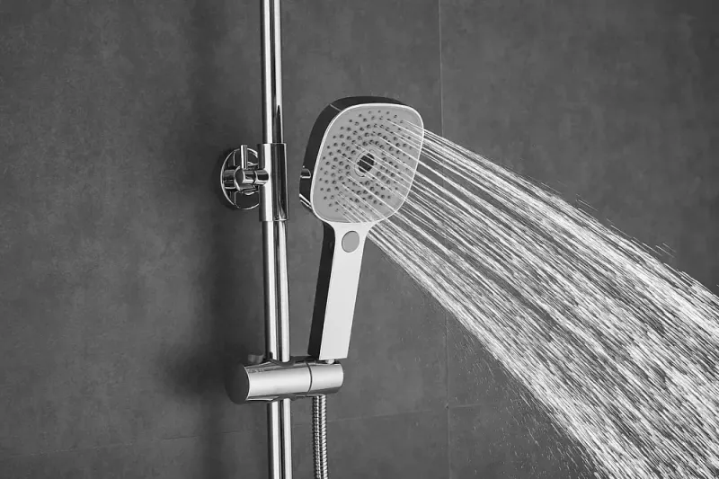 Душевая система Shevanik S9736, хром.Количество режимов струи: 3.Размер верхнего душа: 22,5x22,5 см.Управление: рычажное.Излив для наполнения ванны: да.