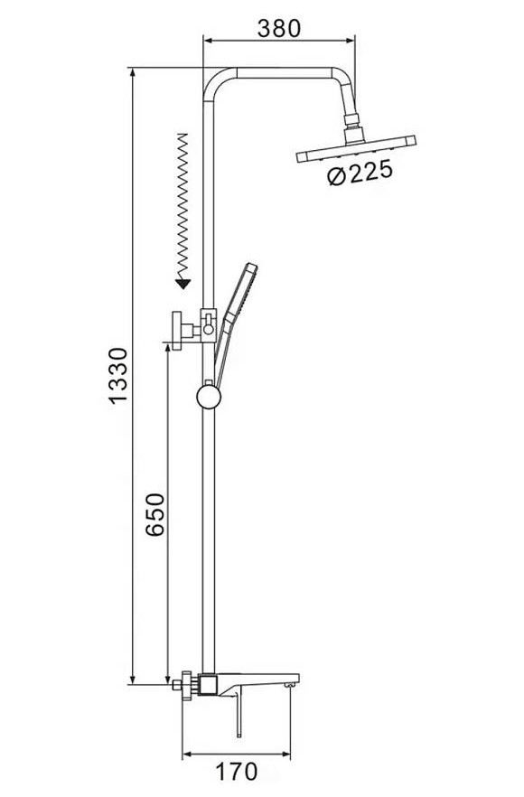 Душевая система Shevanik S9736H, черный.Количество режимов струи: 3.Размер верхнего душа: 22,5x22,5 см.Управление: рычажное.Излив для наполнения ванны: да.