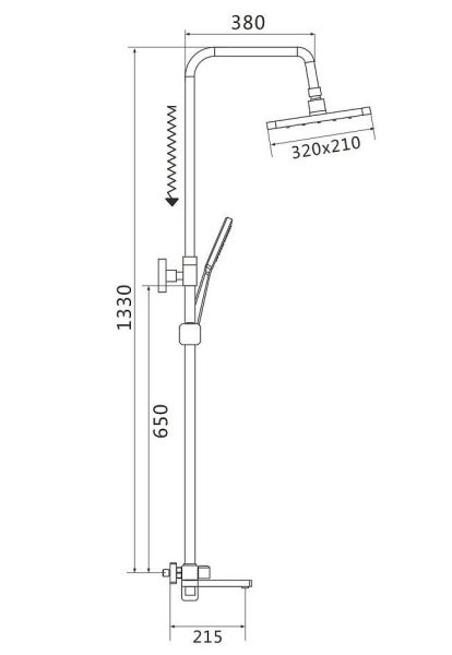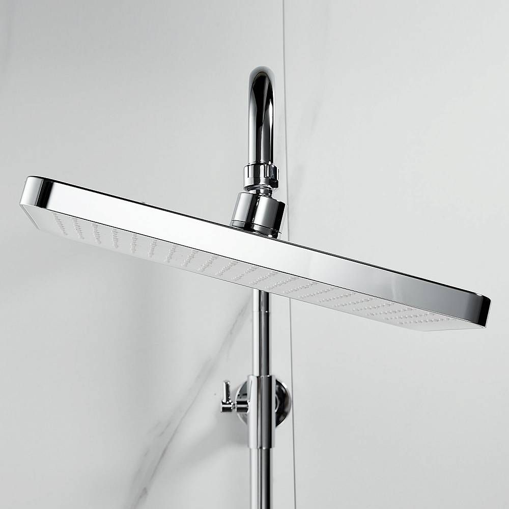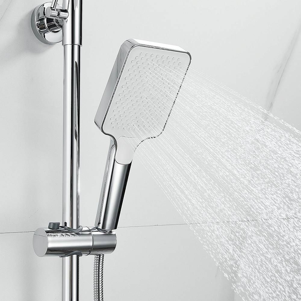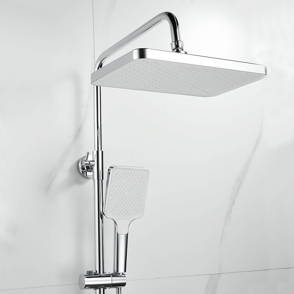 Душевая система Shevanik S9936, хром.Количество режимов струи: 3.Размер верхнего душа: 32x21 см.Управление: рычажное.Излив для наполнения ванны: да.