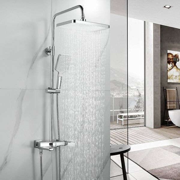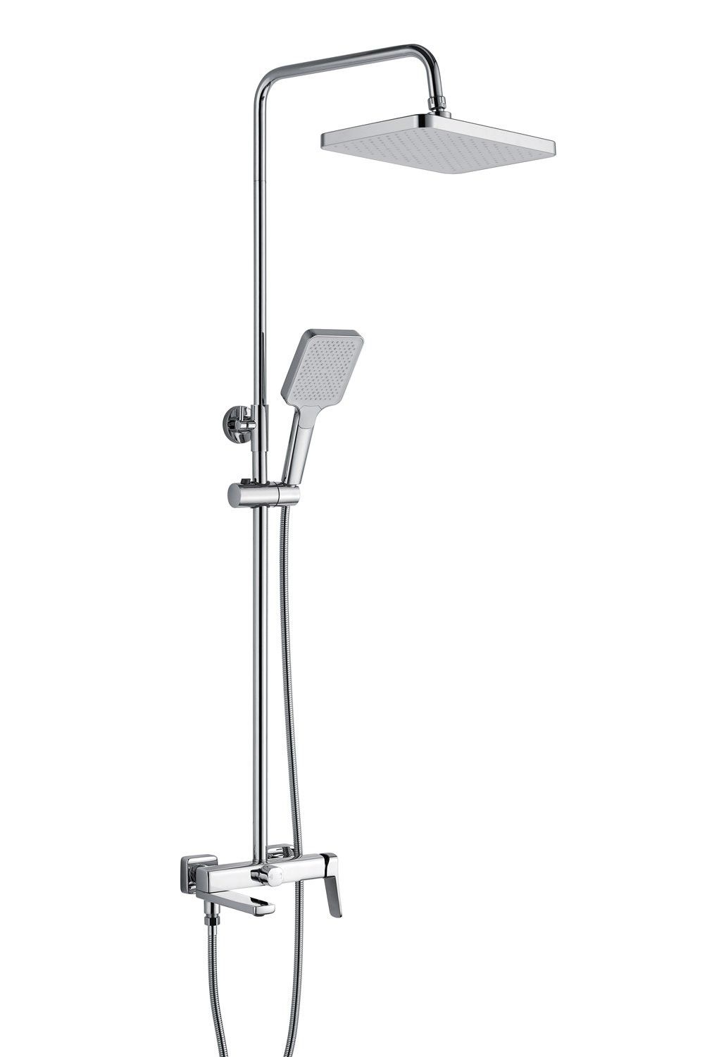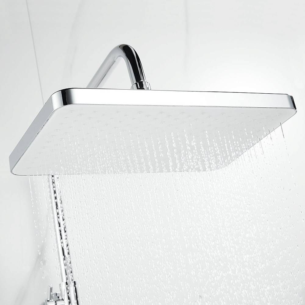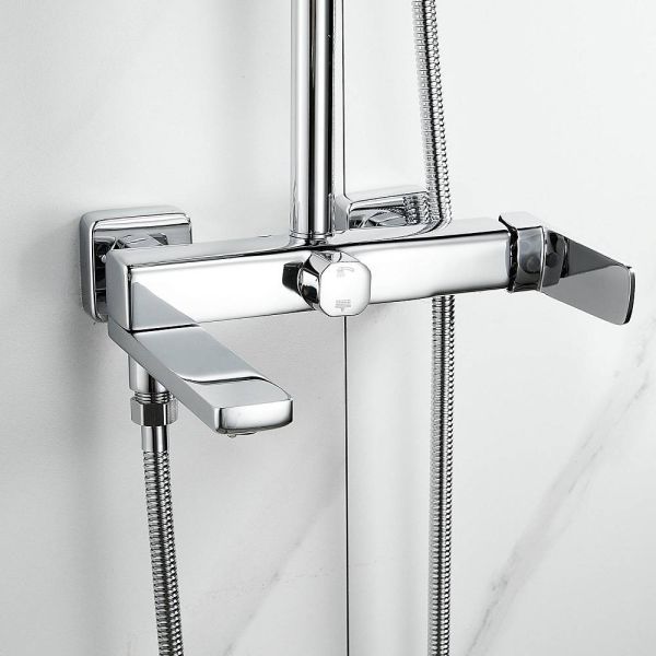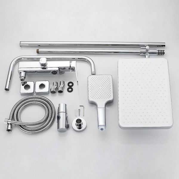 Душевая система Shevanik S9936, хром.Количество режимов струи: 3.Размер верхнего душа: 32x21 см.Управление: рычажное.Излив для наполнения ванны: да.
